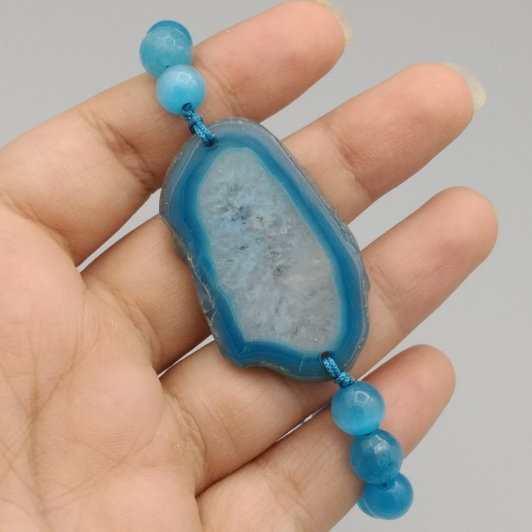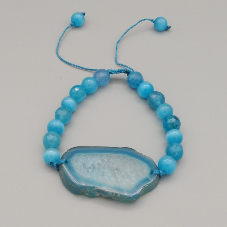 دستبند جید و چشم گربه به همراه میانکار اسلایس عقیق ژئودی اصل معدنی کد 8009