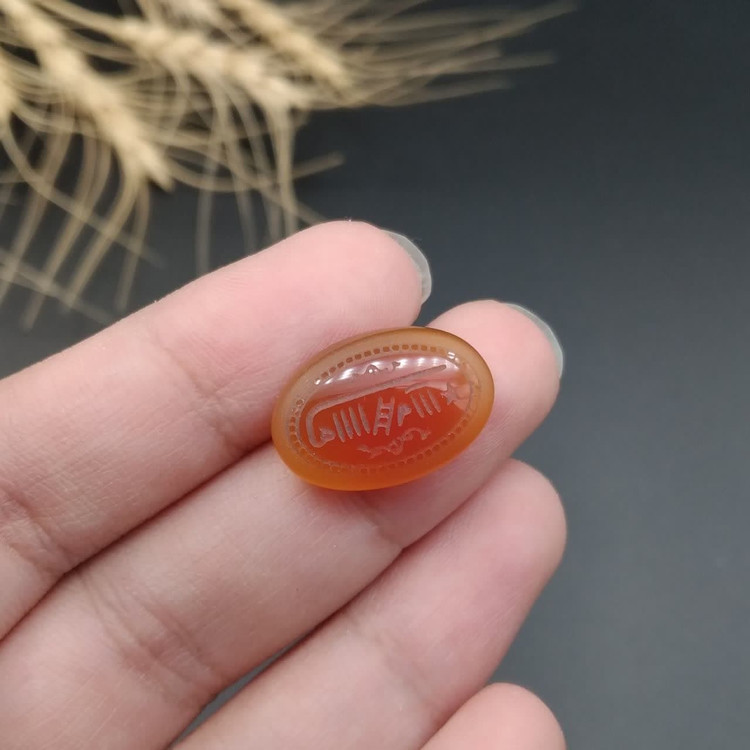 نگین عقیق پرتقالی اصل معدنی حکاکی شرف الشمس روی سنگ کد 8449