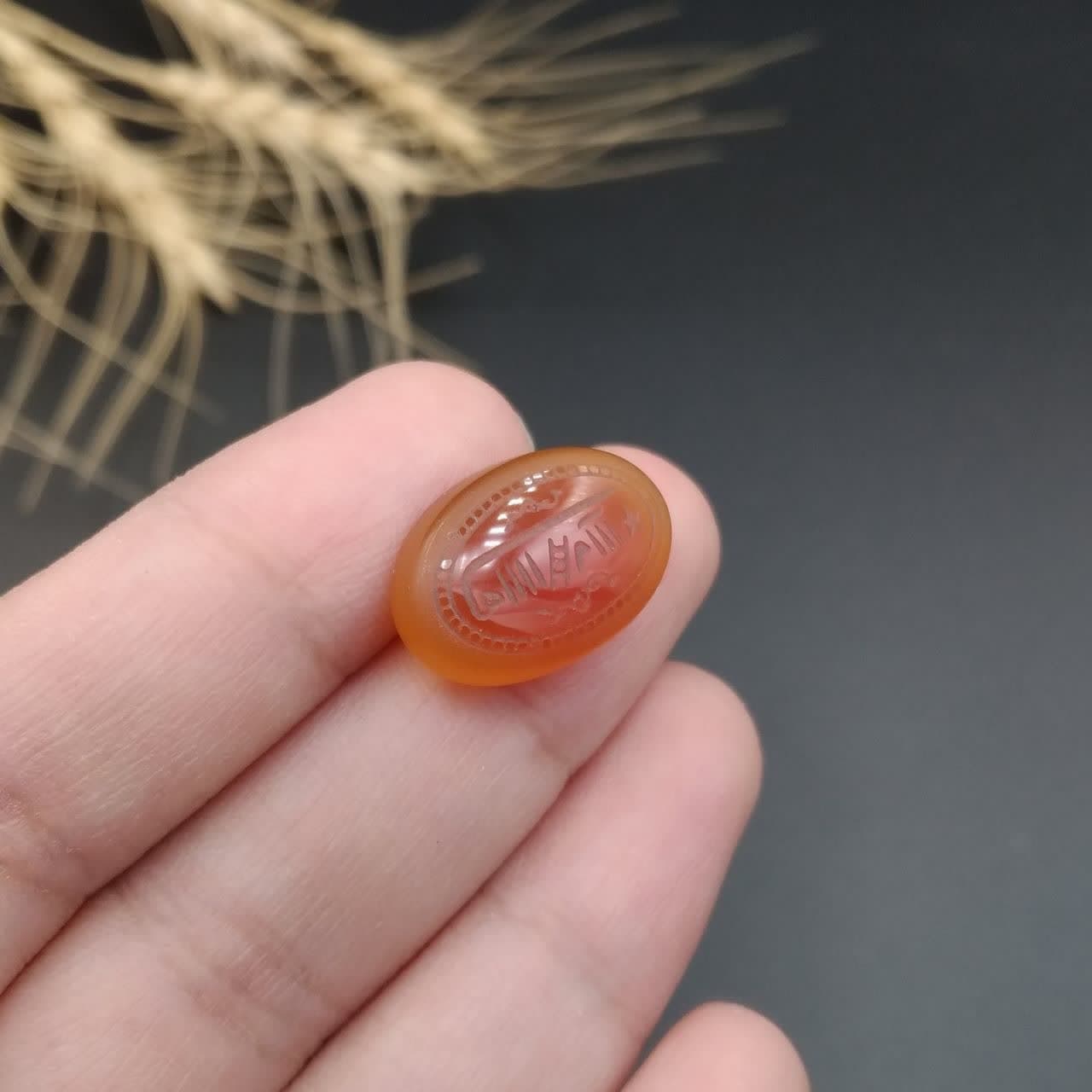 نگین عقیق پرتقالی اصل معدنی حکاکی شرف الشمس روی سنگ کد 8449