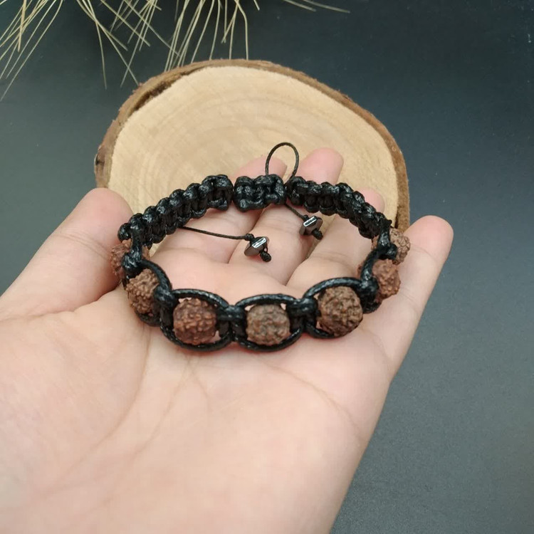 دستبند چرم رودراکشا اصل با رنگ طبیعی کد8484
