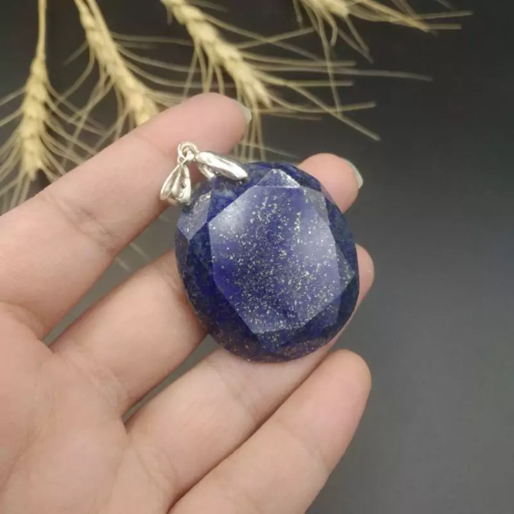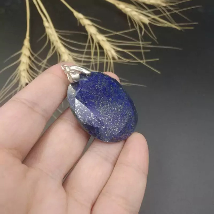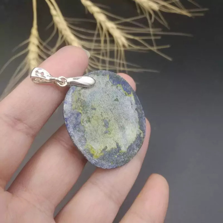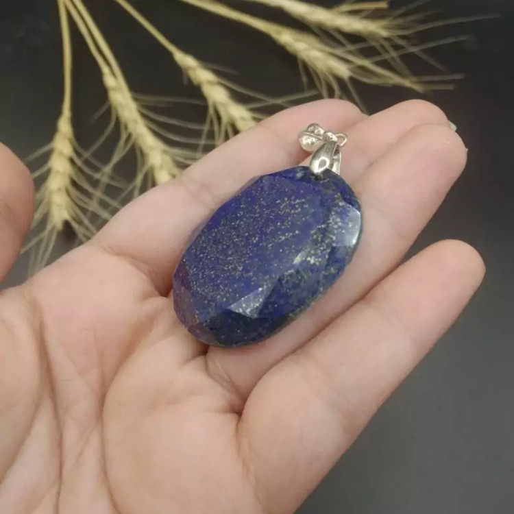 گردنبند نقره با سنگ لاجورد افغان اصل معدنی کد 7874