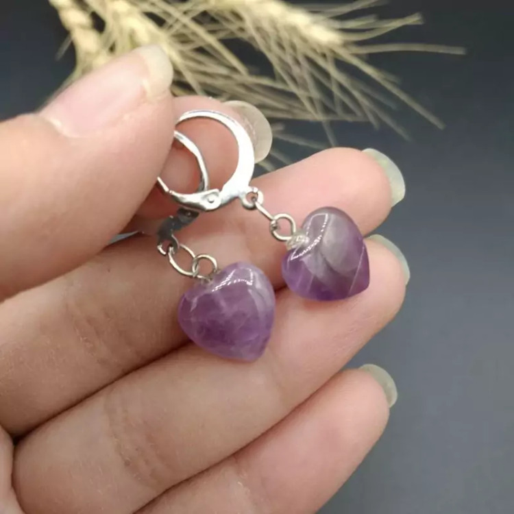گوشواره آمیتیست تراش قلب دو طرفه اصل معدنی کد 8490