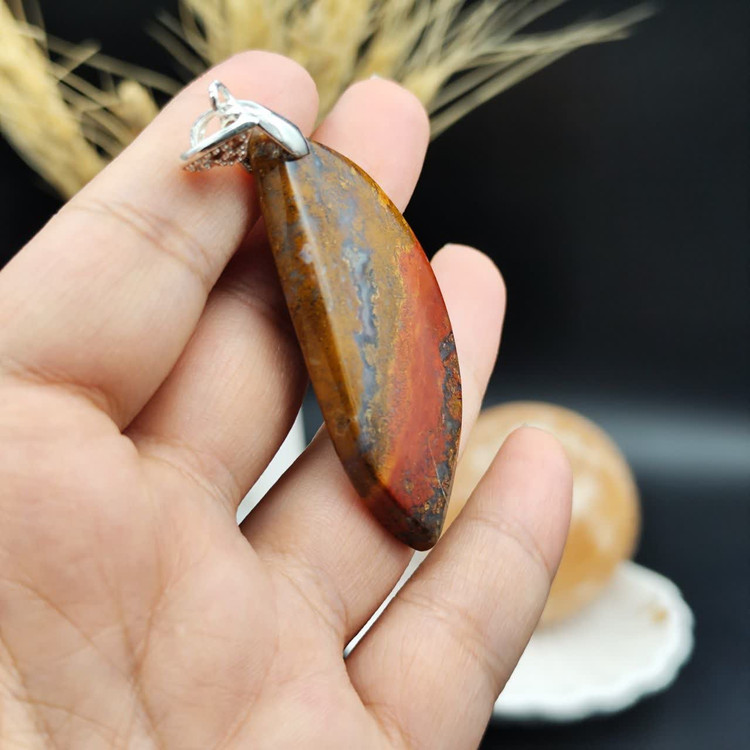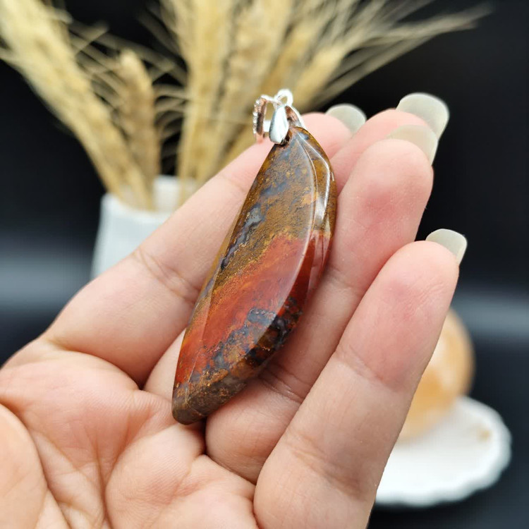 گردنبند نقره عقیق شجر خزه ای (پاییزه) اصل طبیعی 8165