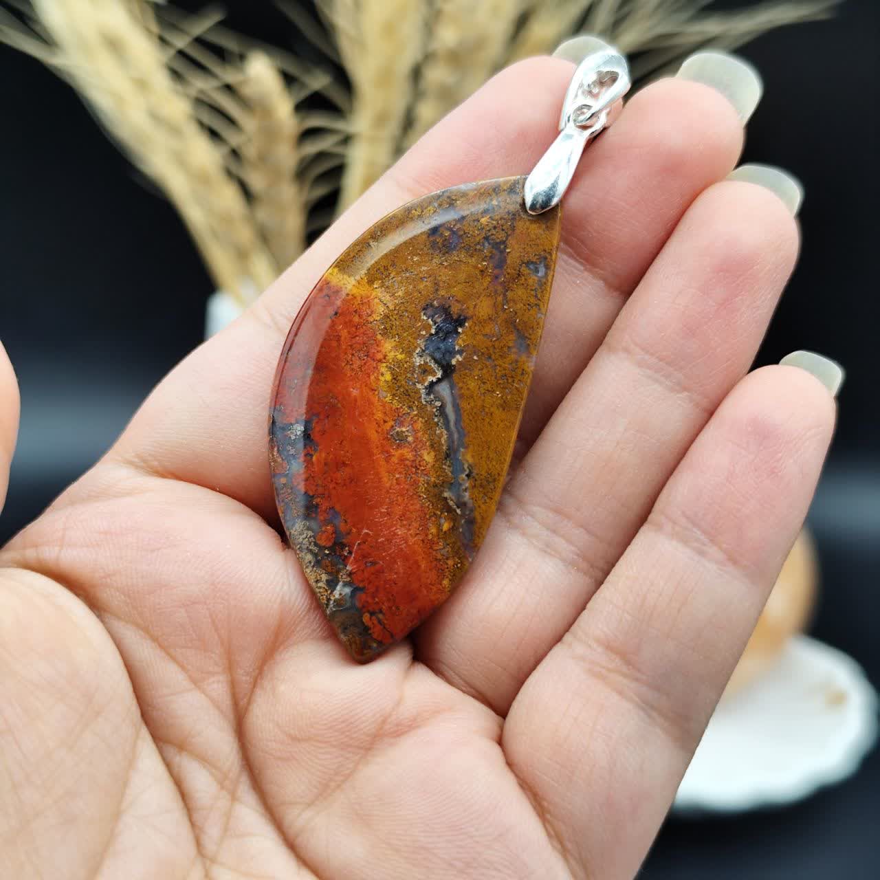 گردنبند نقره عقیق شجر خزه ای (پاییزه) اصل طبیعی 8165
