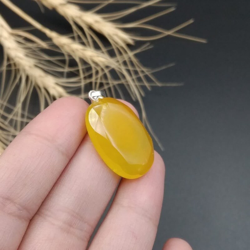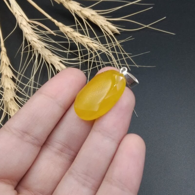 گردن اویز نقره فوق العاده زیبا و بسیار خاص عقیق زرد تراش دار اصل معدنی 8515