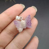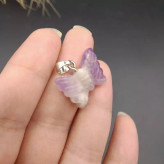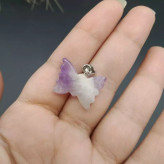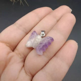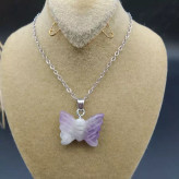 گردنبند ترکیبی از سنگ های کوارتز و آمیتیست اصل معدنی تراش پروانه هنر دست به همراه زنجیر استیل رنگ ثابت کد 7826