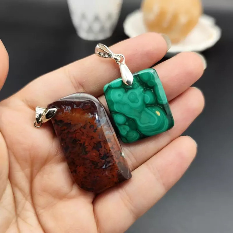 گردنبند مالاکیت نقره و گردنبند عقیق شجر خزه طرح 1+1 عیدانه
