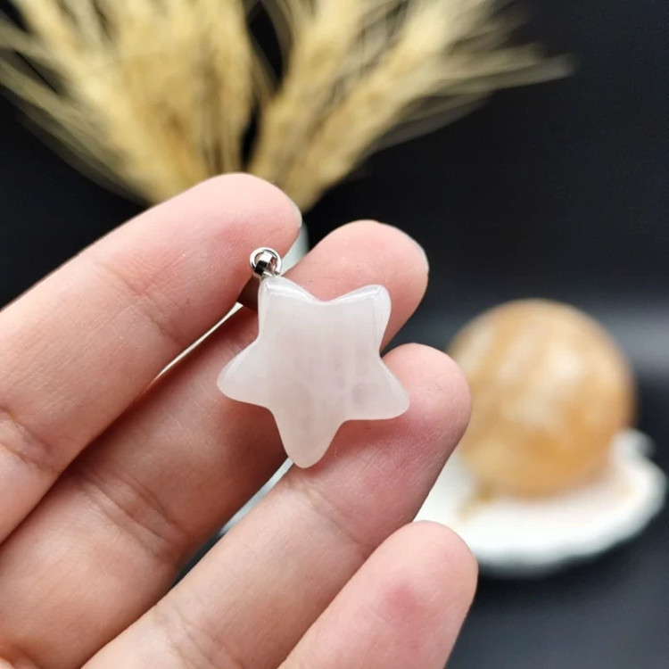 گردنبند رزکوارتز تراش ستاره دو طرفه اصل معدنی کد 9232