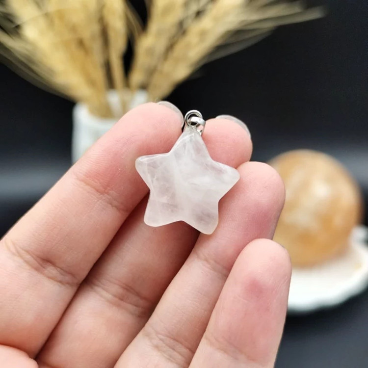 گردنبند رزکوارتز تراش ستاره دو طرفه اصل معدنی کد 9235