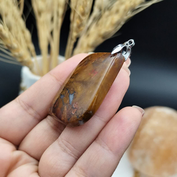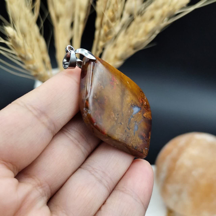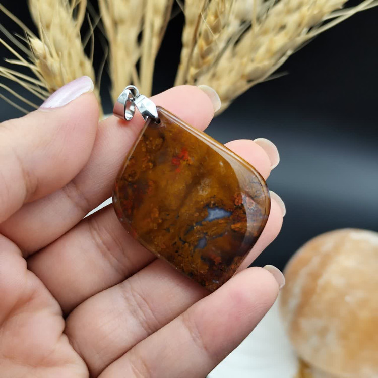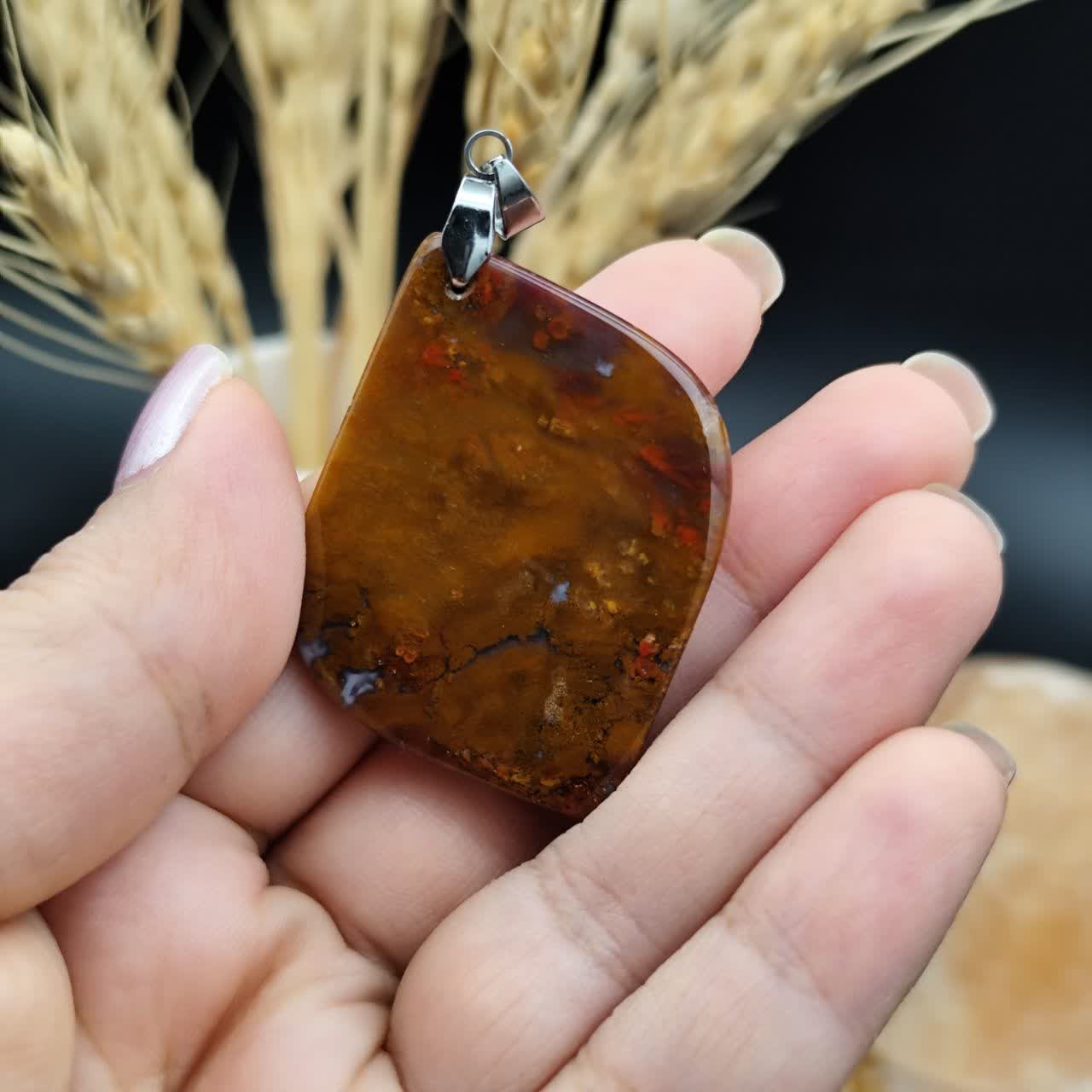 گردنبند عقیق شجر خزه ای ( پائیزه ) اصل معدنی کد 8160 _ گیره استیل رنگ ثابت