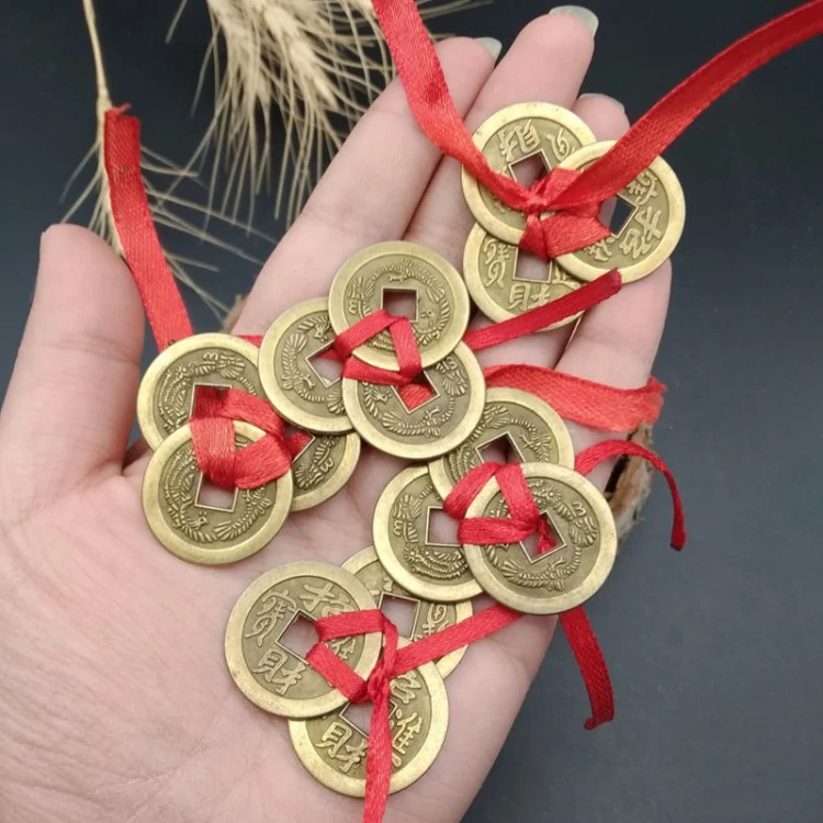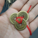 سکه ایچینگ سه تایی به همراه روبان قرمز جاذب ثروت و مناسب فنگشویی کد 8979