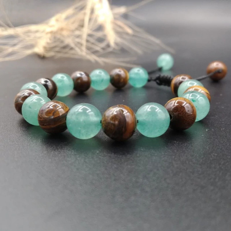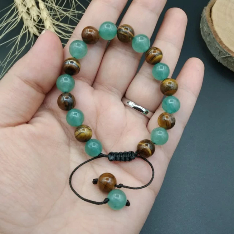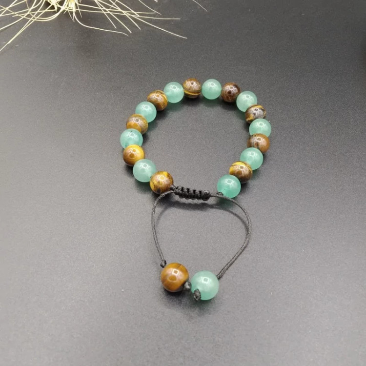 دستبند ترکیبی چشم ببر و آونتورین اصل معدنی ( مناسب افراد فروشنده و اهل مذاکره ) کد 8482