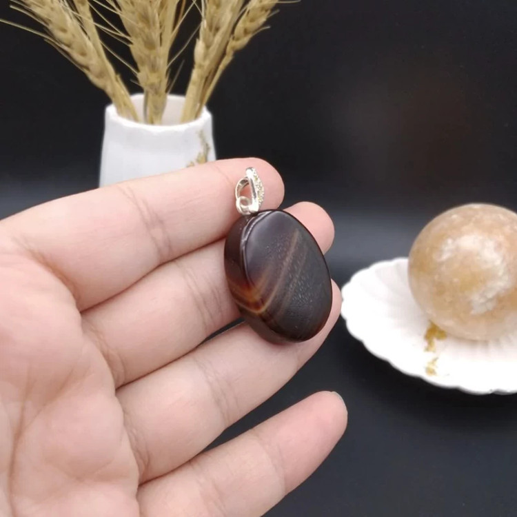 گردنبند نقره عقیق سلیمانی خراسانی اصل معدنی کد 8718