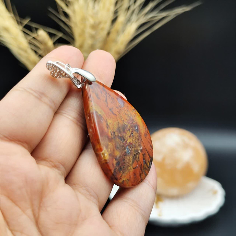 خواص مختصری از سنگ عقیق شجر خزه ای ( نمونه قرمز خزه ای پاییزه ) 👇 🔵 از جمله سنگهایی است که برای همه افراد مفید است 🔵 انرژی این سنگ متعادل ، سالم و بی خطر است 🔵 باعث افزایش حس اعتماد بنفس میشود 🔵 باعث شادابی روح و روان فرد است 🔵 پرورش فطرت صلح جو 🔵 کاهش تغییرات خلق و خو 🔵 باعث افزایش تمرکز ، پایداری و تحمل فرد است 🔵 باعث چند برابر کردن اراده فرد برای رسیدن به هدف . خواص مختصری از فلز نقره 👇 🔵 نماد قلمرو ناخودآگاه 🔵 نقره فلزی متعلق به ماه ، شب ، راز ، مرموز بودن ، انرژی زنانه و نیروی حیات در جنبه نهفته آن است 🔵 مناسب و متعادل کننده تمامی مراکز انرژی بدن است 🔵 کمک به خنک کردن حرارت اضافی بدن 🔵 ایجاد تعادل هورمونی در خانم ها 🔵 حمایت از دستگاه ایمنی 🔵 تحریک هماهنگ شدن با جنبه شهودی و احساسی خویش 🔵 پیوند زدن زنان و مردان با بخش زنانه وجودشان 🔵 تحریک ارتباط فرد با طبیعت 🔵 فراهم کردن امکان رویا پردازی به قلمروهای ماورائی برای فرد و هماهنگ کردن فرد با ژرفای درونی ضمیر ناخود آگاه 🔵 انرژی نقره درونگرا است بر خلاف طلا که برون گرا است 🔵 نقره خود داری و پژواک درونی را پرورش میدهد 🔵 نقره آینه روح ( نفس ) و فلزی متعلق به مهتاب است 🔵 بهترین کارکرد را در کنار سنگ ها دارد که توانایی های روانی را ارتقا میدهند و یا در جهت شفای حوزه احساسی عمل میکند 🔵 یاری کننده در رویا بینی و سیاحت در خاطرات نامحسوس