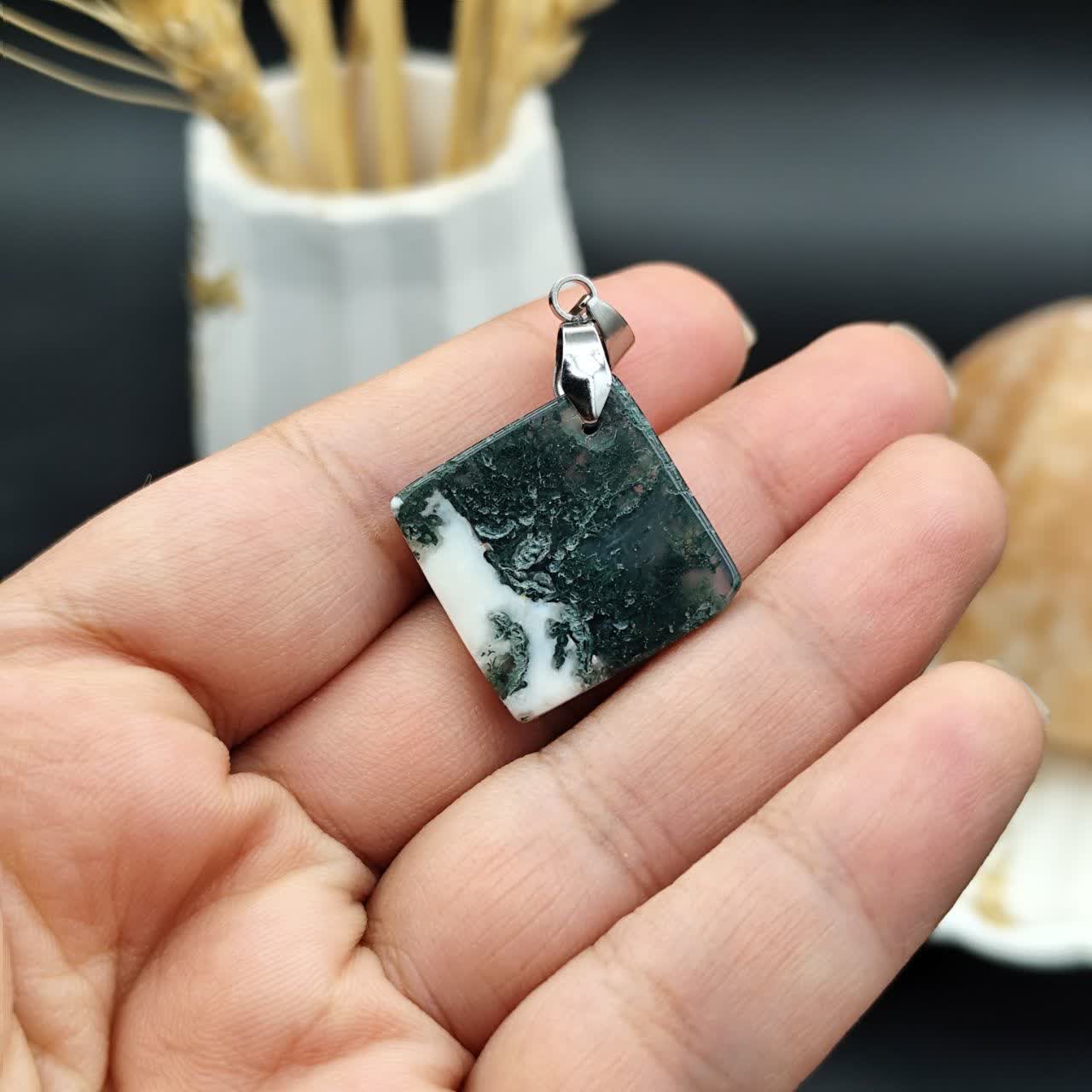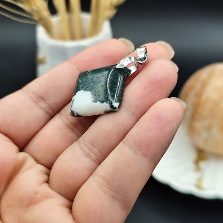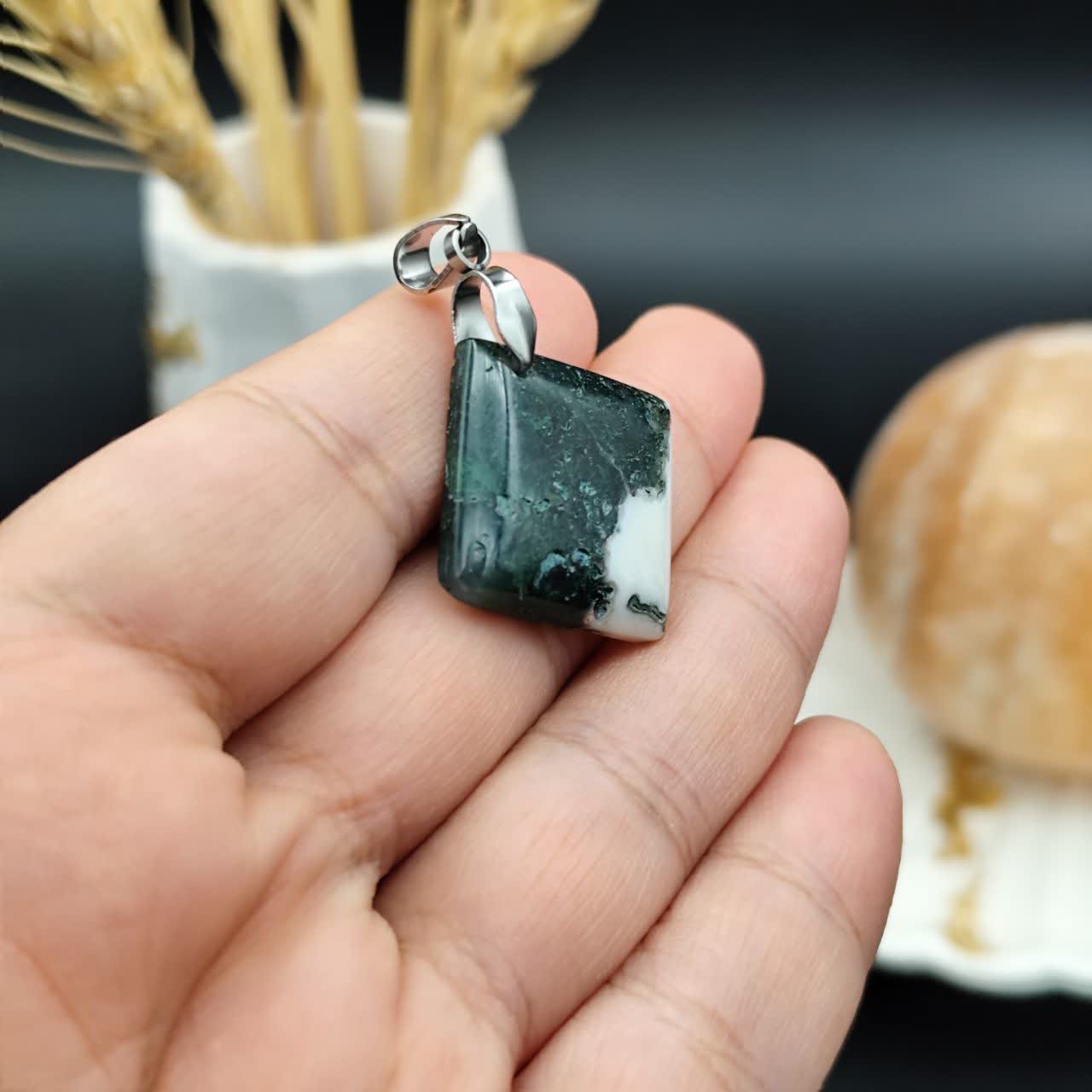 گردنبند عقیق شجر خزه ای اصل طبیعی کد 7512 استیل رنگ ثابت