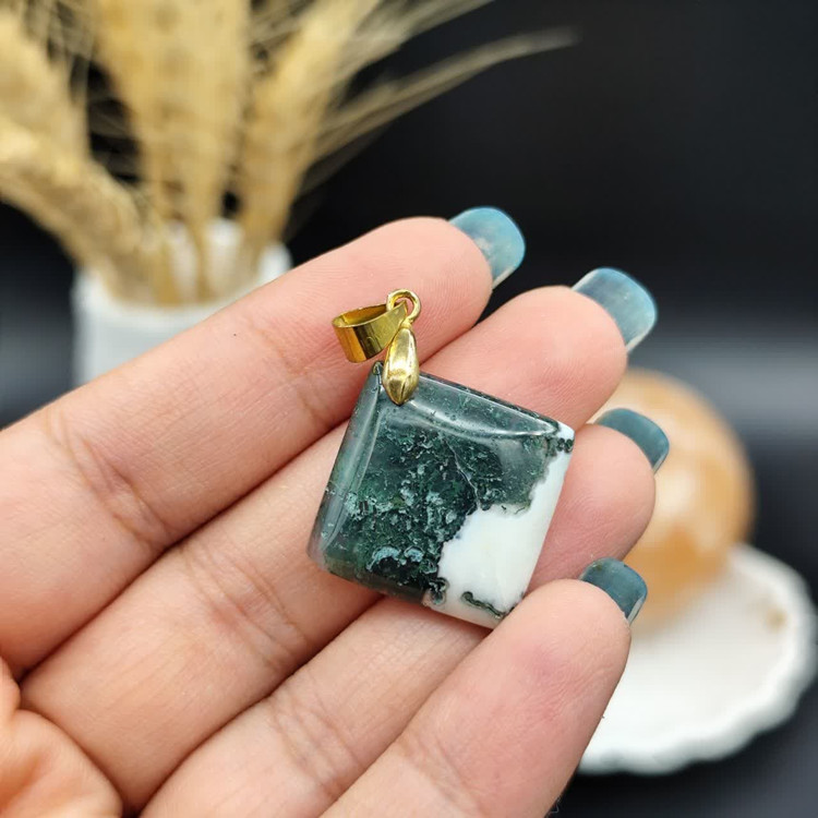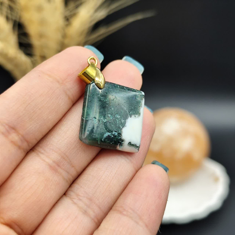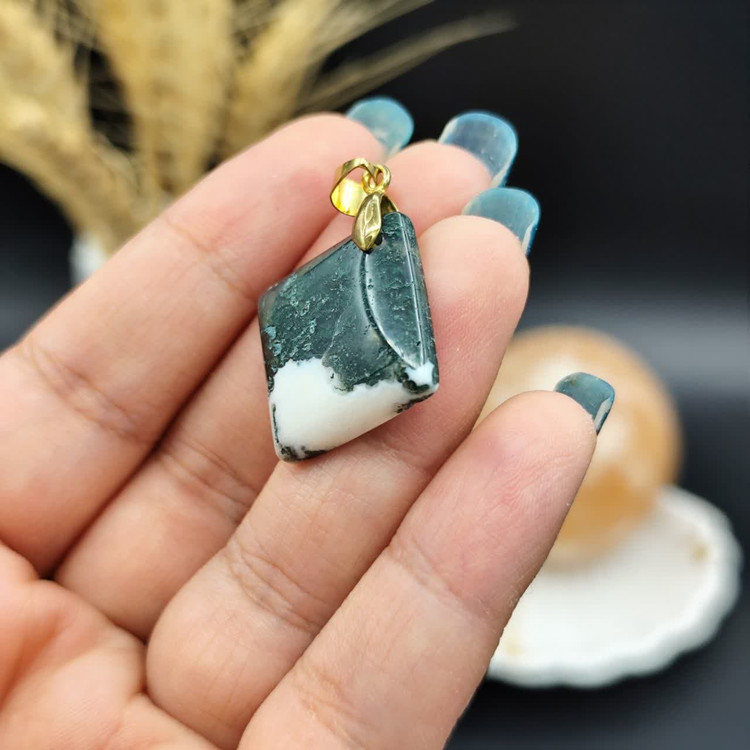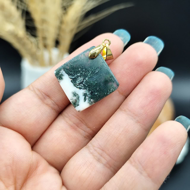 گردنبند عقیق شجر خزه ای اصل طبیعی کد 7512