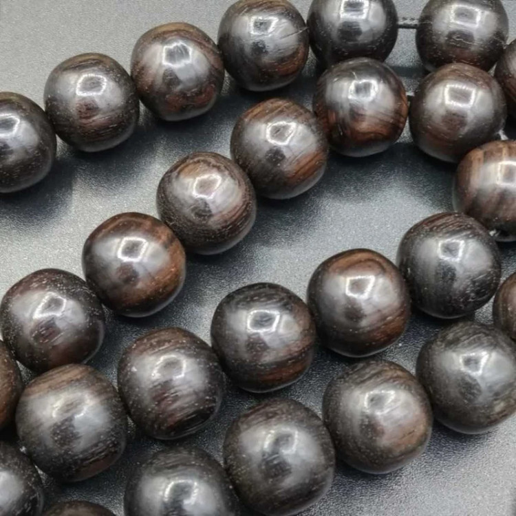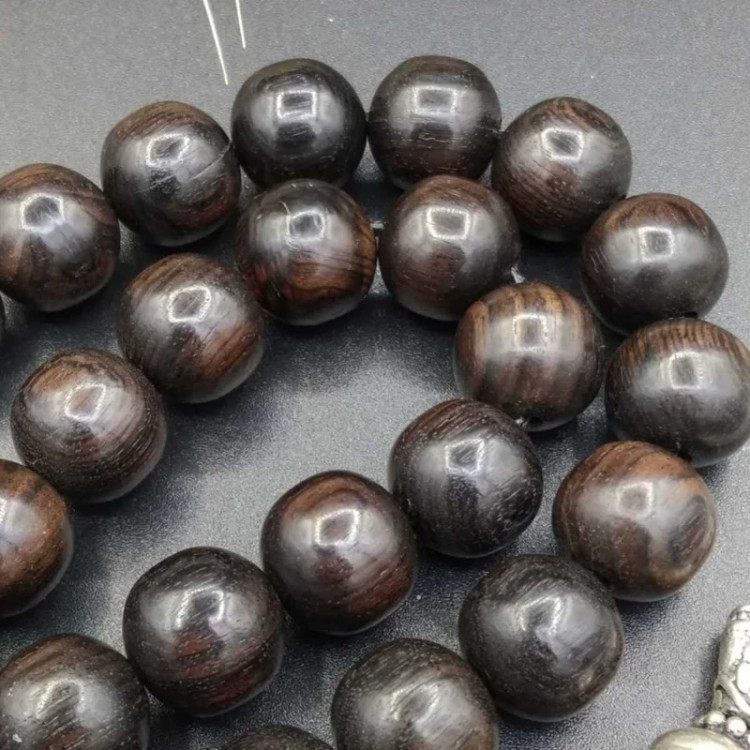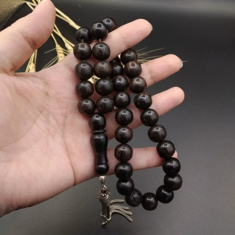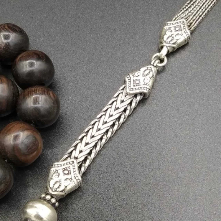 تسبیح چوب آبنوس اصل تراش دست با شرابه نقره کد 8396
