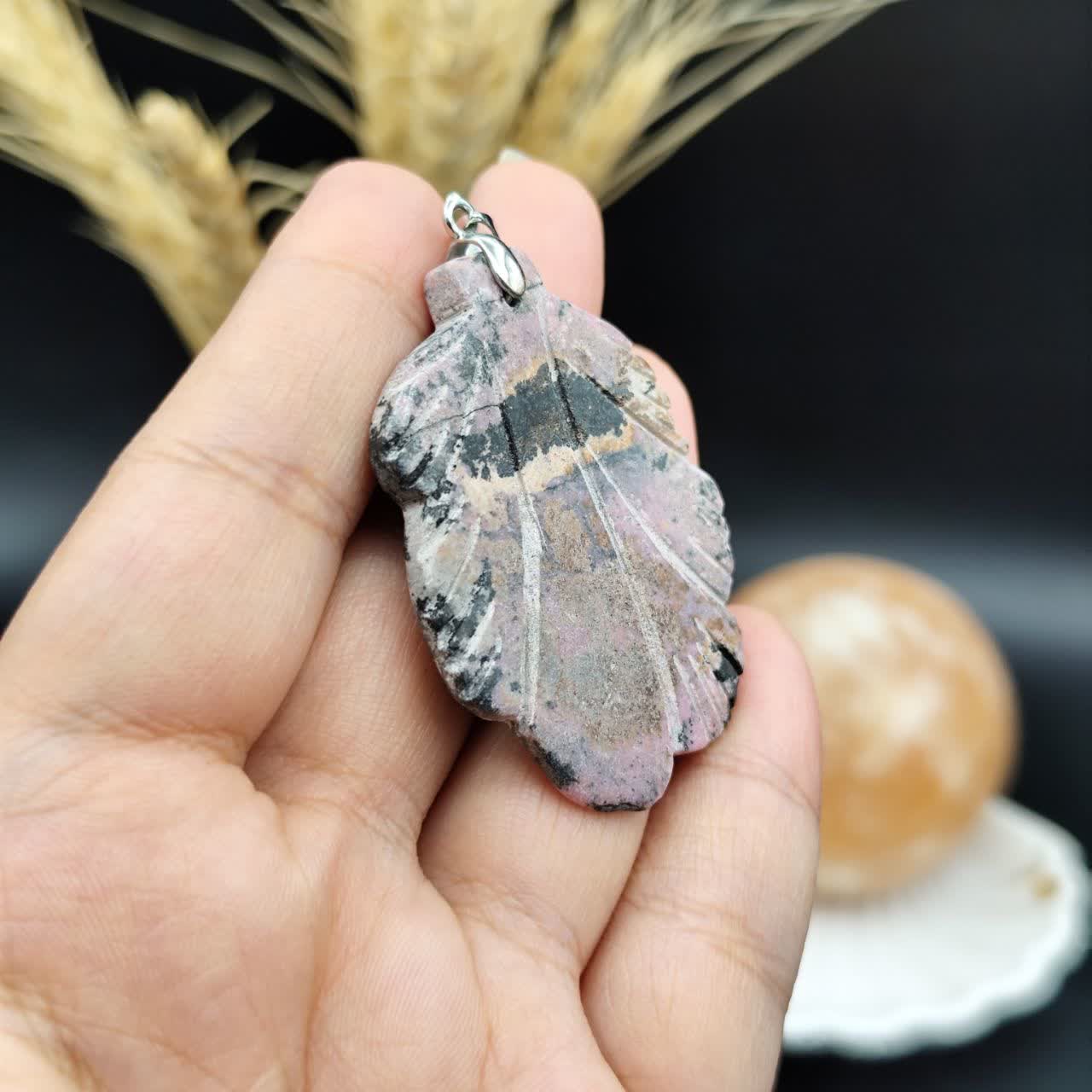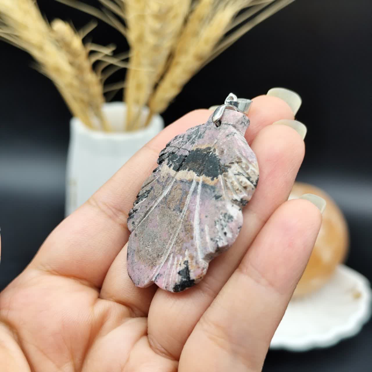 گردنبند رودونیت اصل معدنی تراش کاروئینگ کد 7961