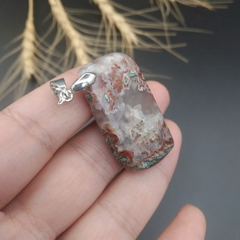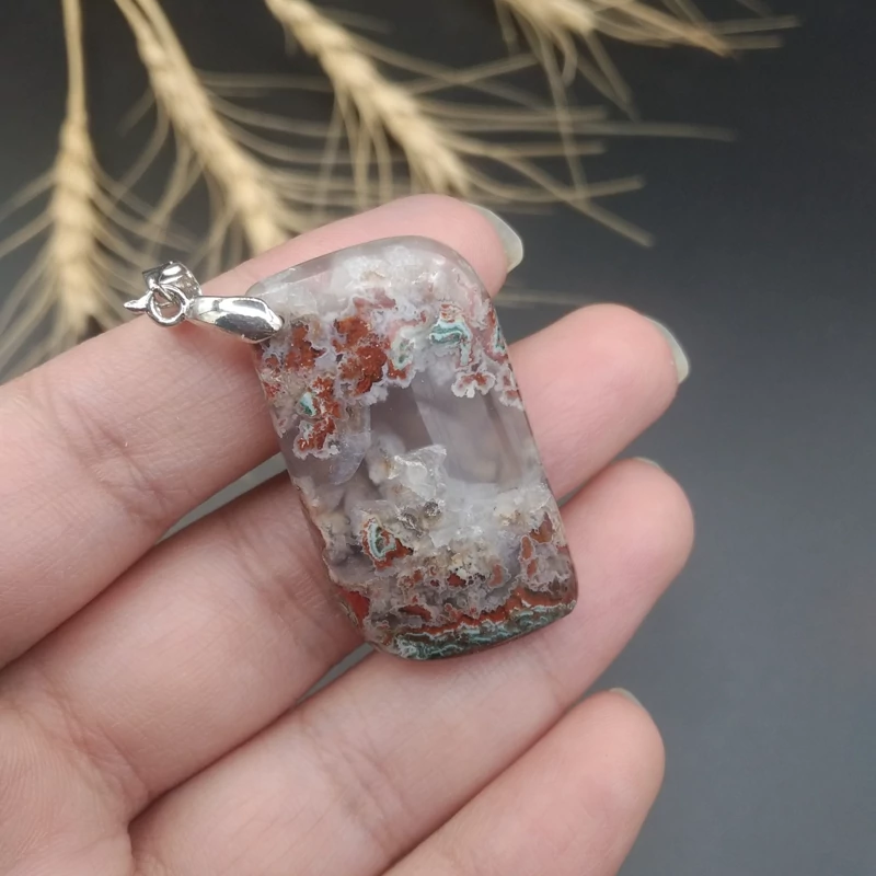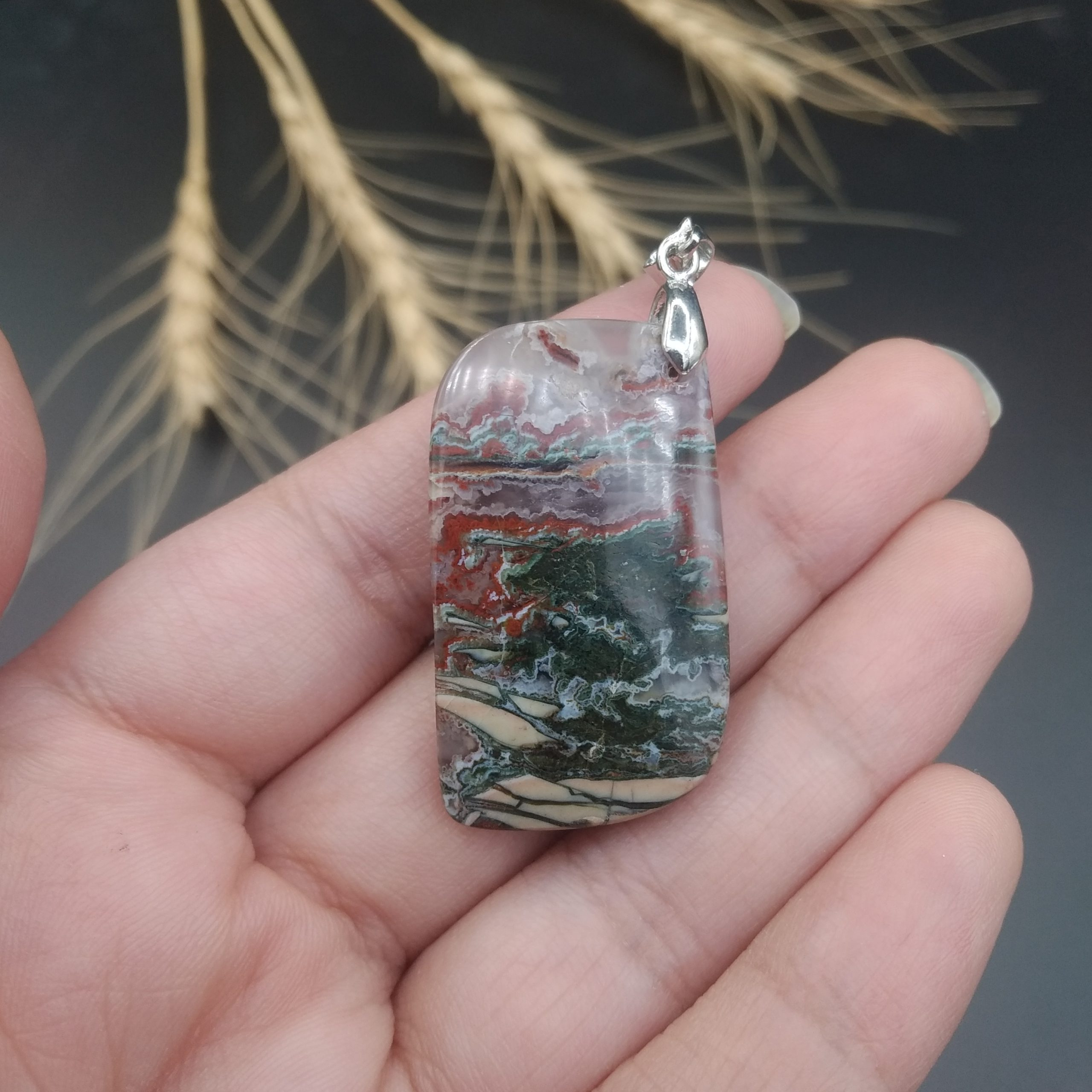 گردنبند نقره عقیق شجر خزه ای ( پائیزه ) اصل معدنی کد 8178