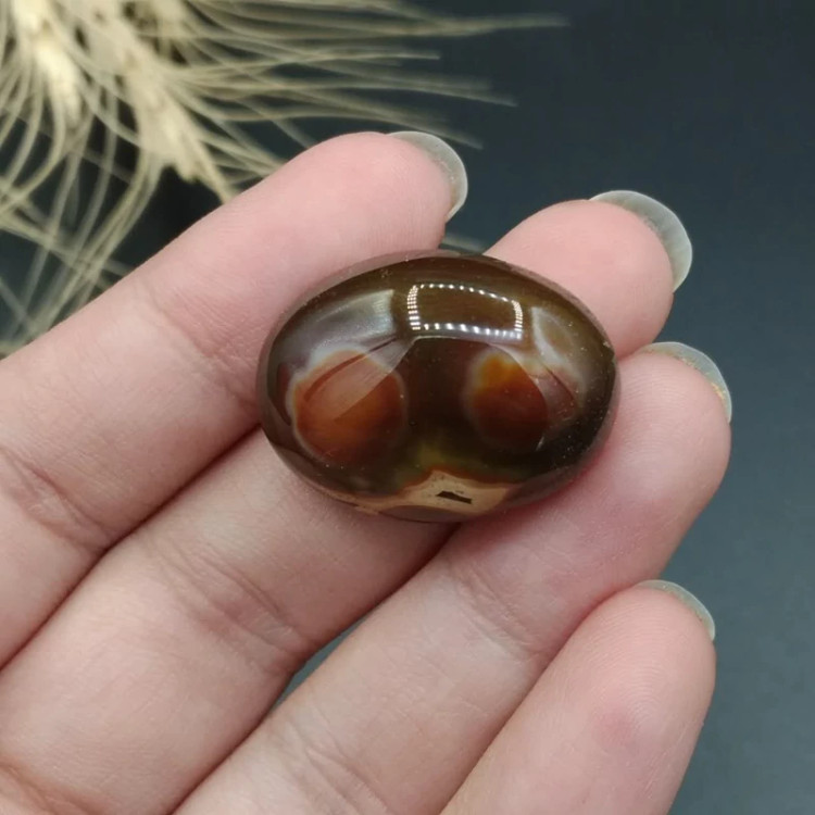 نگین عقیق بابا غوری مصور دو چشم اصل معدنی کد 8385