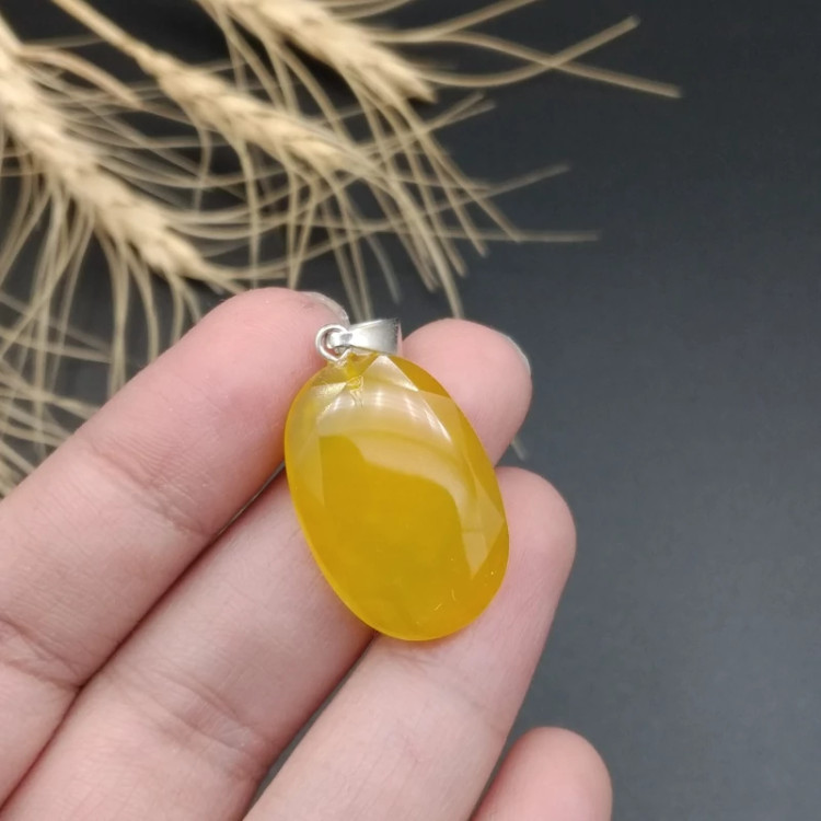 گردنبند نقره عقیق زرد خراسان تراش دار اصل معدنی کد 8515