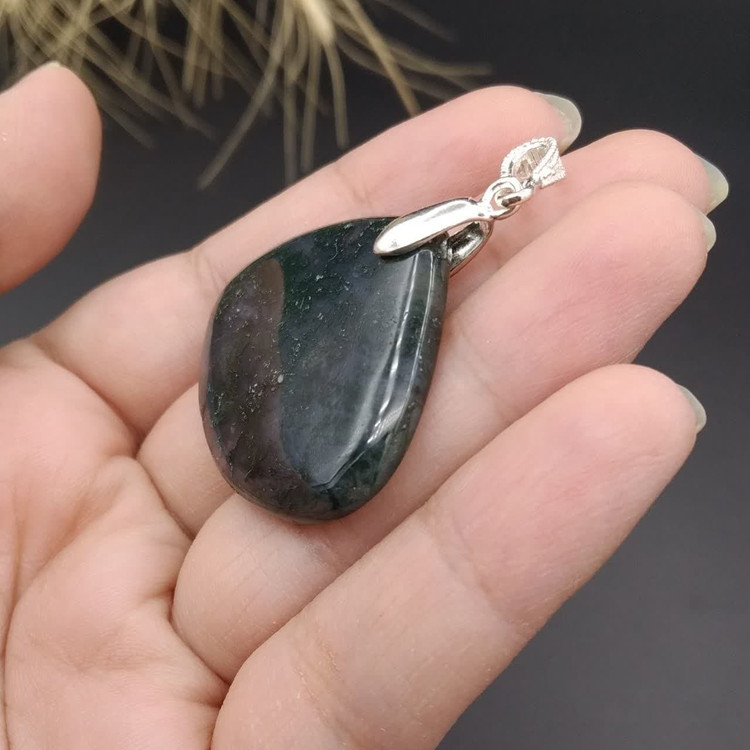 گردنبند نقره عقیق شجر خزه ای اصل معدنی کد 8768
