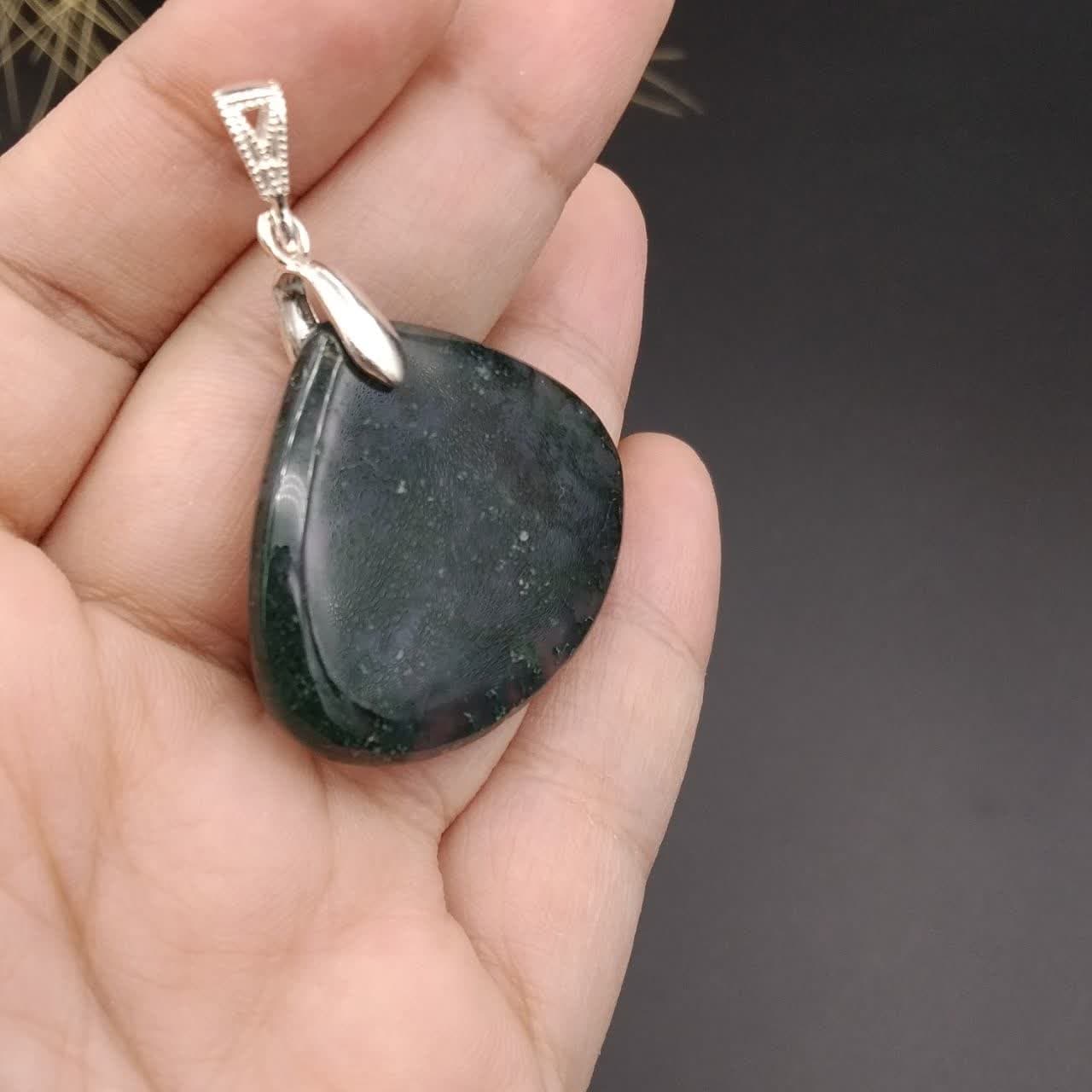 گردنبند نقره عقیق شجر خزه ای اصل معدنی کد 8768