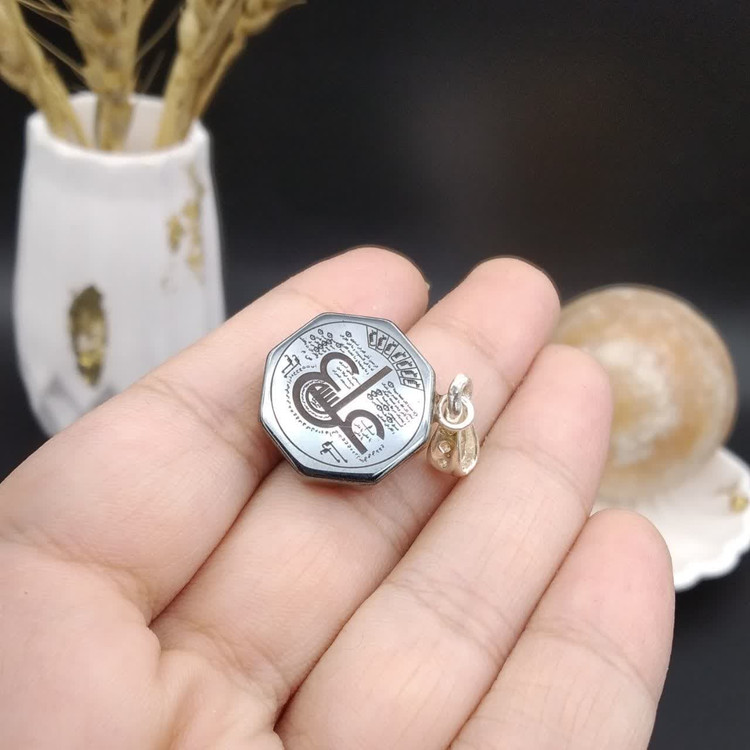 گردنبند نقره حدید اصل معدنی مزین به حرز سلیمانی و دعای ع علی کد 9123