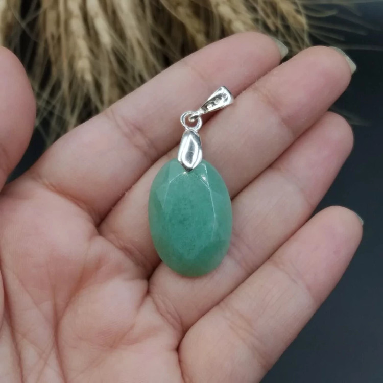 گردنبند نقره اونتورین سبز اصل معدنی کد 8728