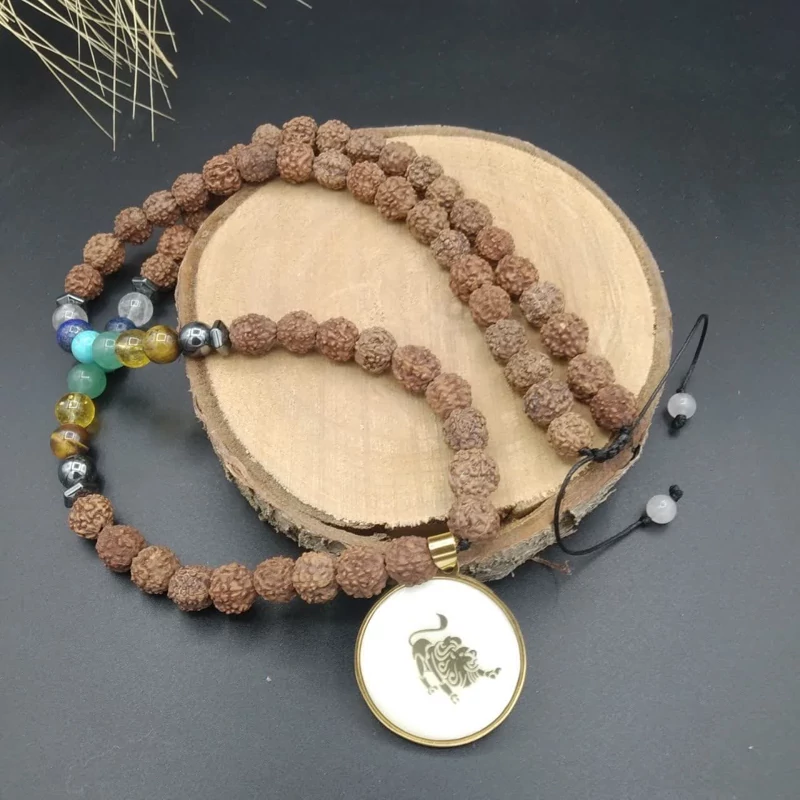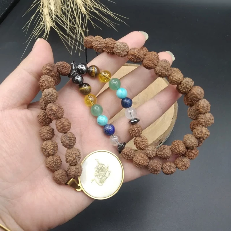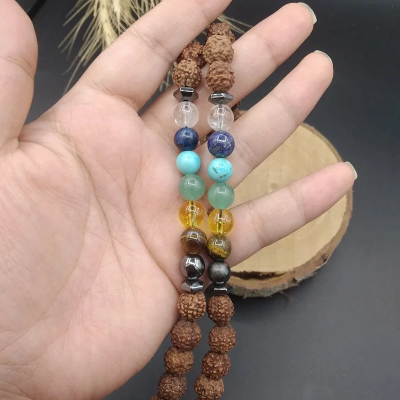 رولباسی هفت سنگ و مهره های رو دراکشا اصل معدنی با پلاک استیل رنگ ثابت و صدف اصل سنبل مرداد ماه کد 8956