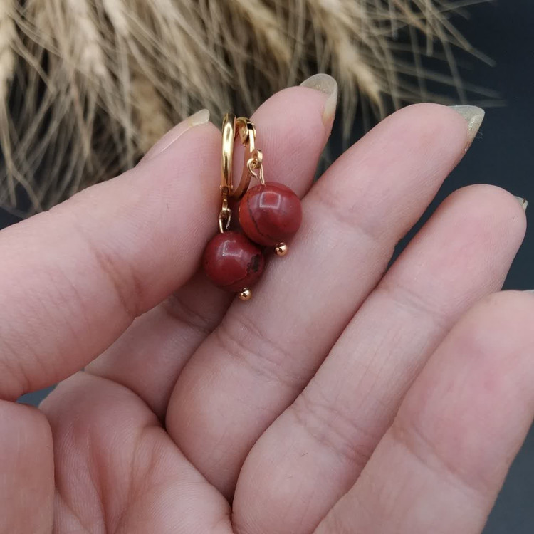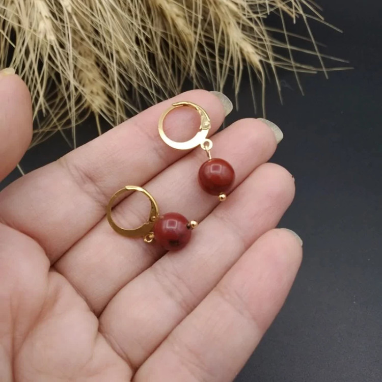 گوشوار جاسپر قرمز اصل معدنی کد 9117