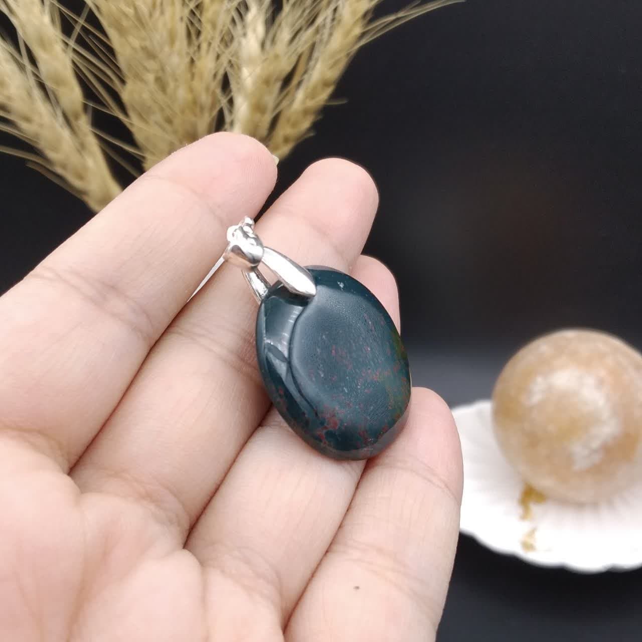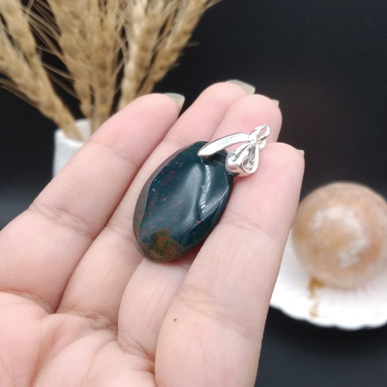 گردنبند نقره سنگ خون اصل معدنی کد 8767