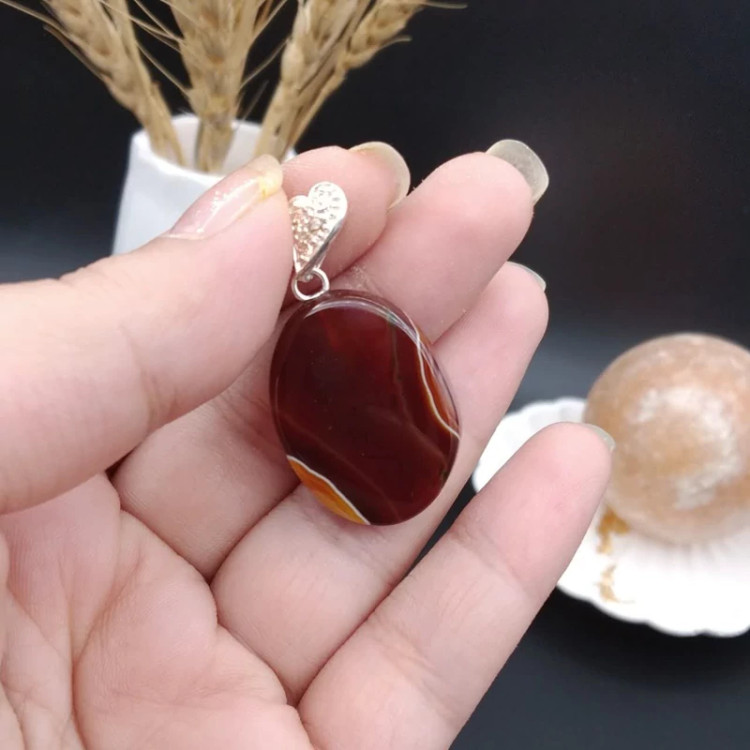 گردنبند نقره عقیق سلیمانی خراسانی اصل معدنی کد 8717