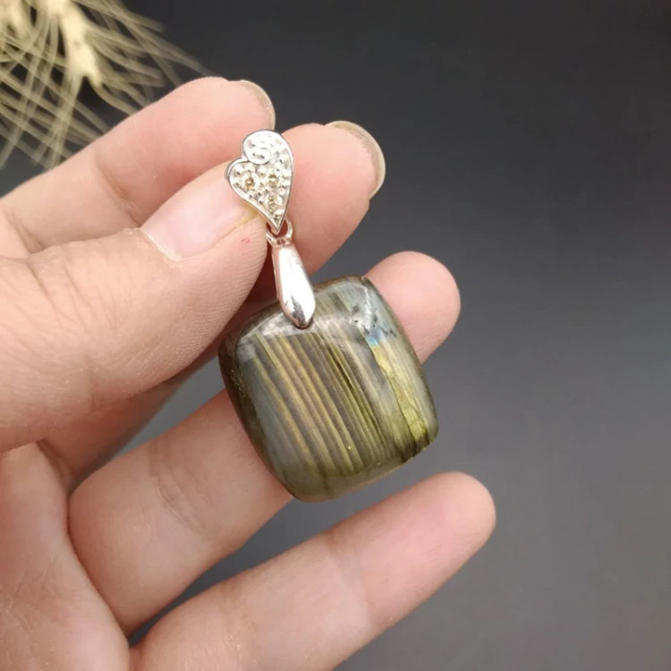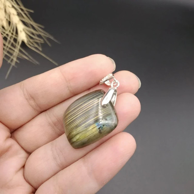 گردنبند نقره لابرادوریت ماداگاسکار اصل معدنی کد 8739