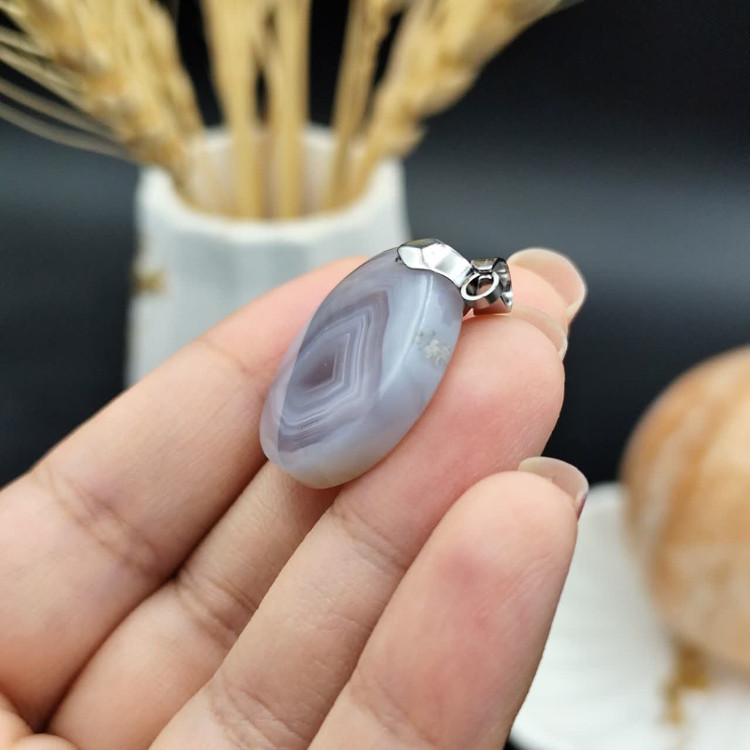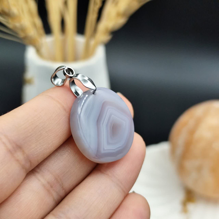 گردنبند عقیق سلیمانی اصل طبیعی کد 8369 _ گیره استیل رنگ ثابت