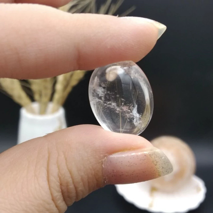 نگین در مویی طلایی ( کوارتز رتایل ) اصل معدنی کد 8663