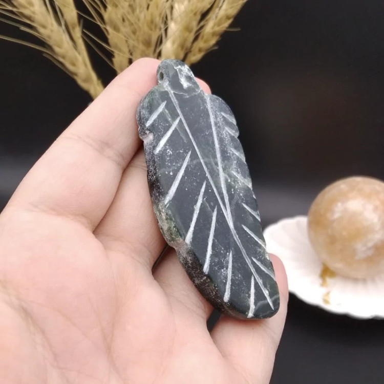 گردنبند و دکوری کاروئینگ یشم سبز اصل معدنی کد 8292