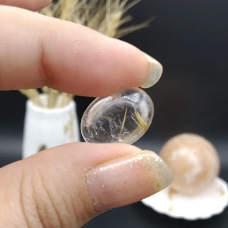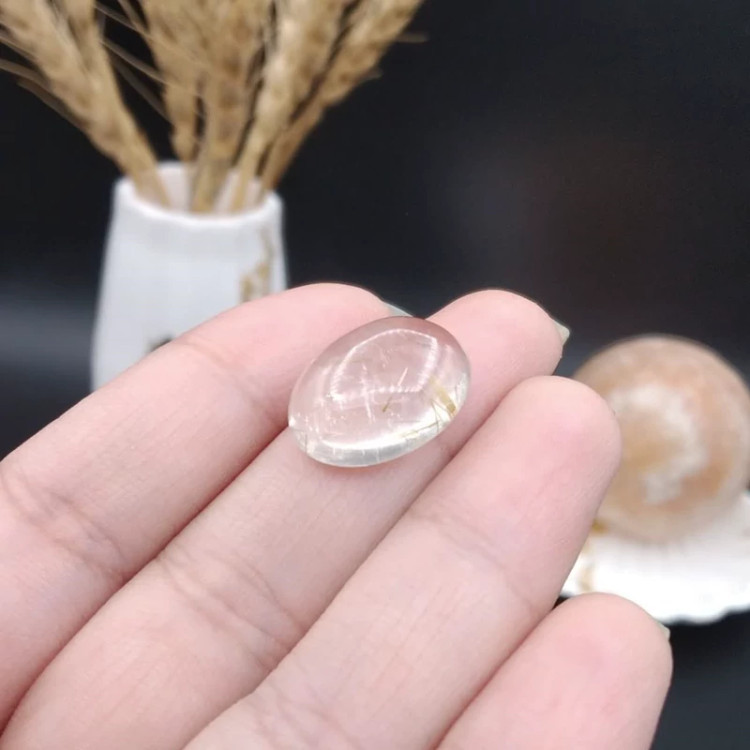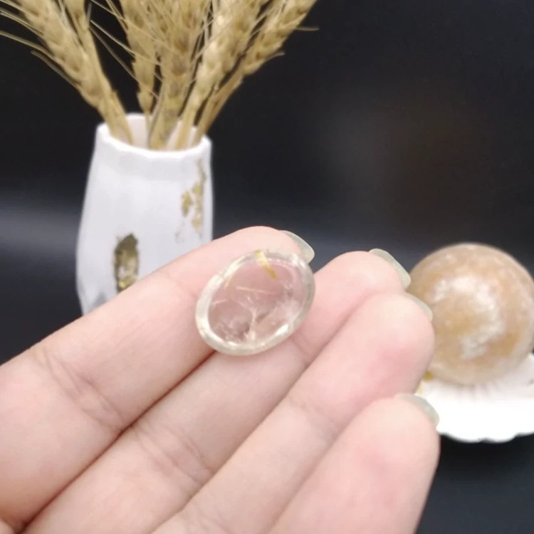 نگین در مویی طلایی ( کوارتز رتایل ) اصل معدنی کد 8664