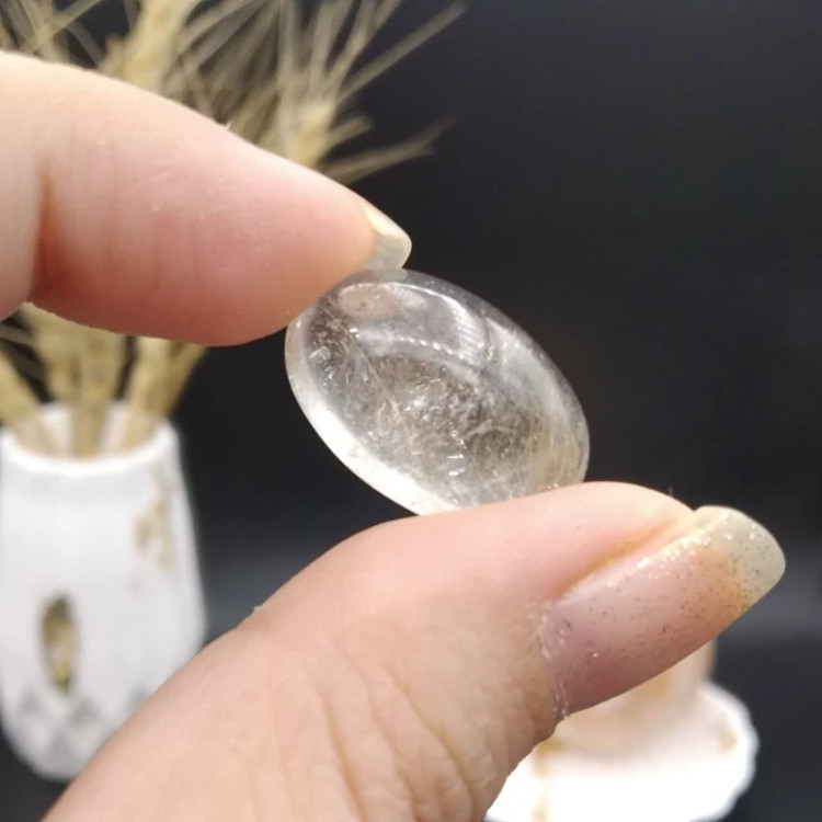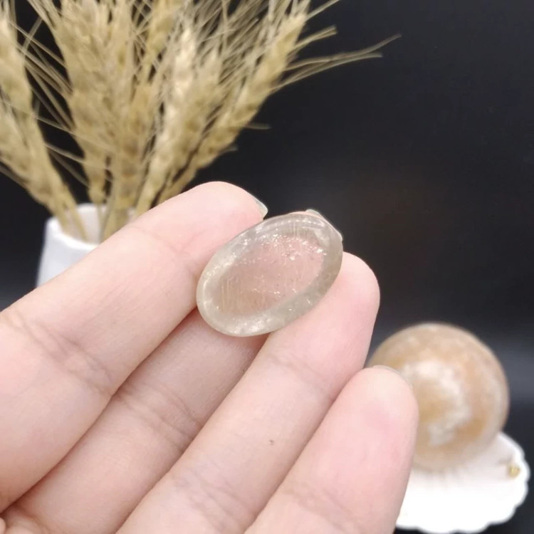 نگین در مویی طلایی ( کوارتز رتایل ) اصل معدنی کد 8657