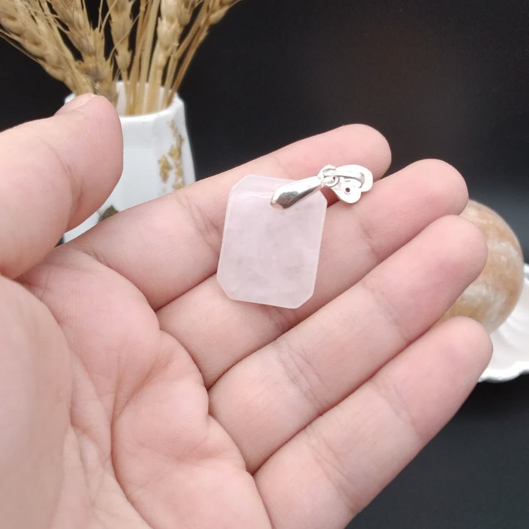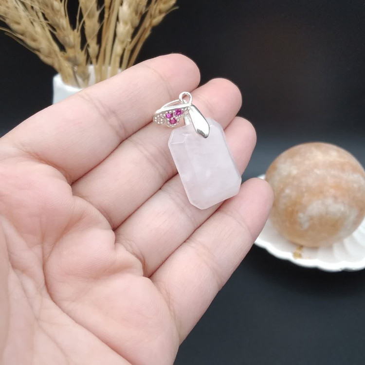 گردنبند نقره رزکوارتز اصل معدنی کد 8712