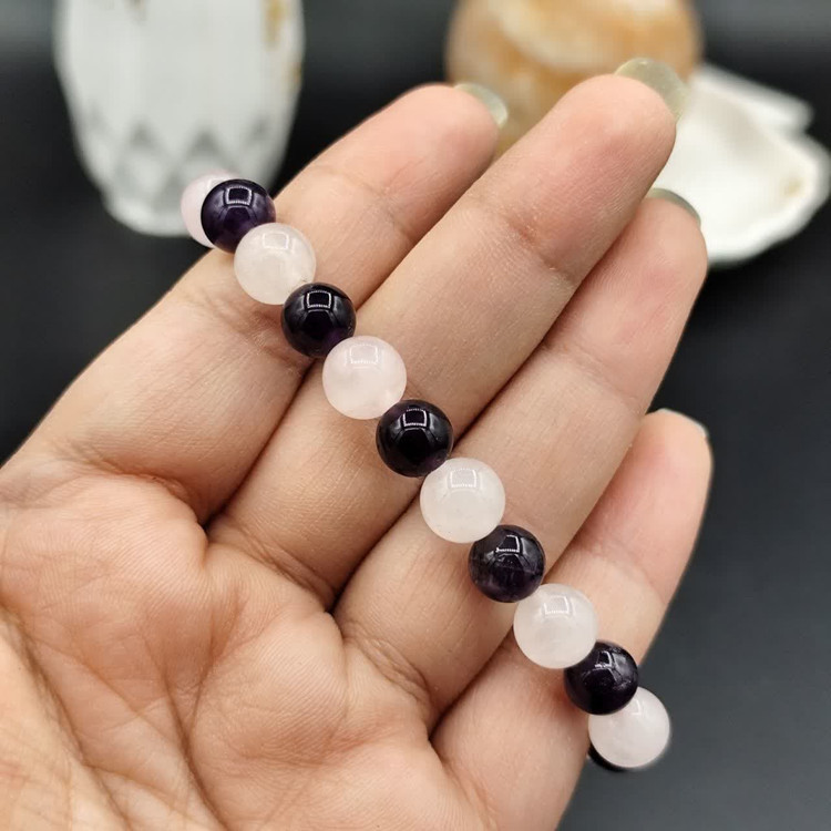 دستبند ترکیبی آمیتیست و رزکوارتز اصل معدنی کد 9443