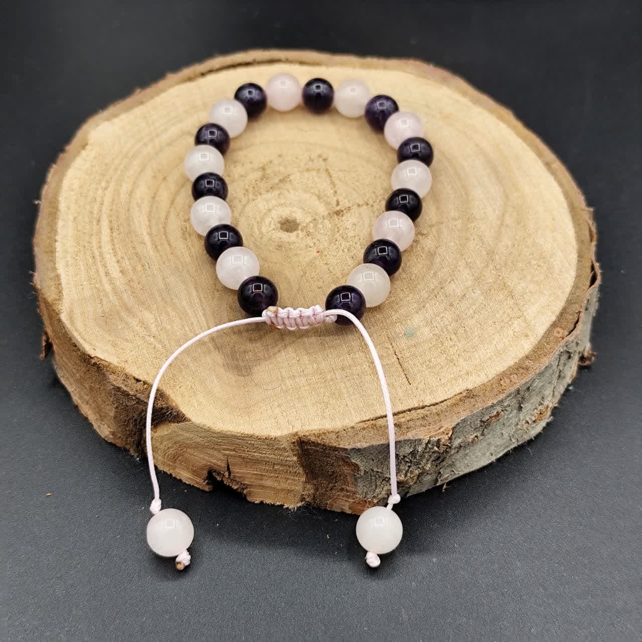 دستبند ترکیبی آمیتیست و رزکوارتز اصل معدنی کد 9443