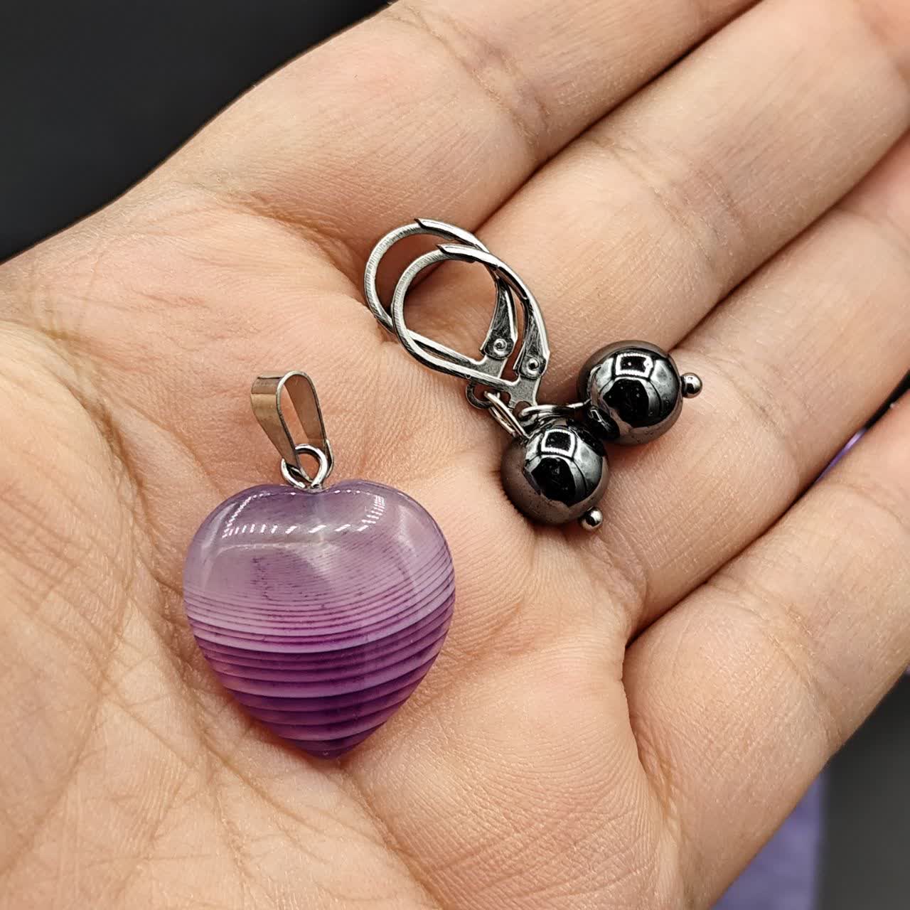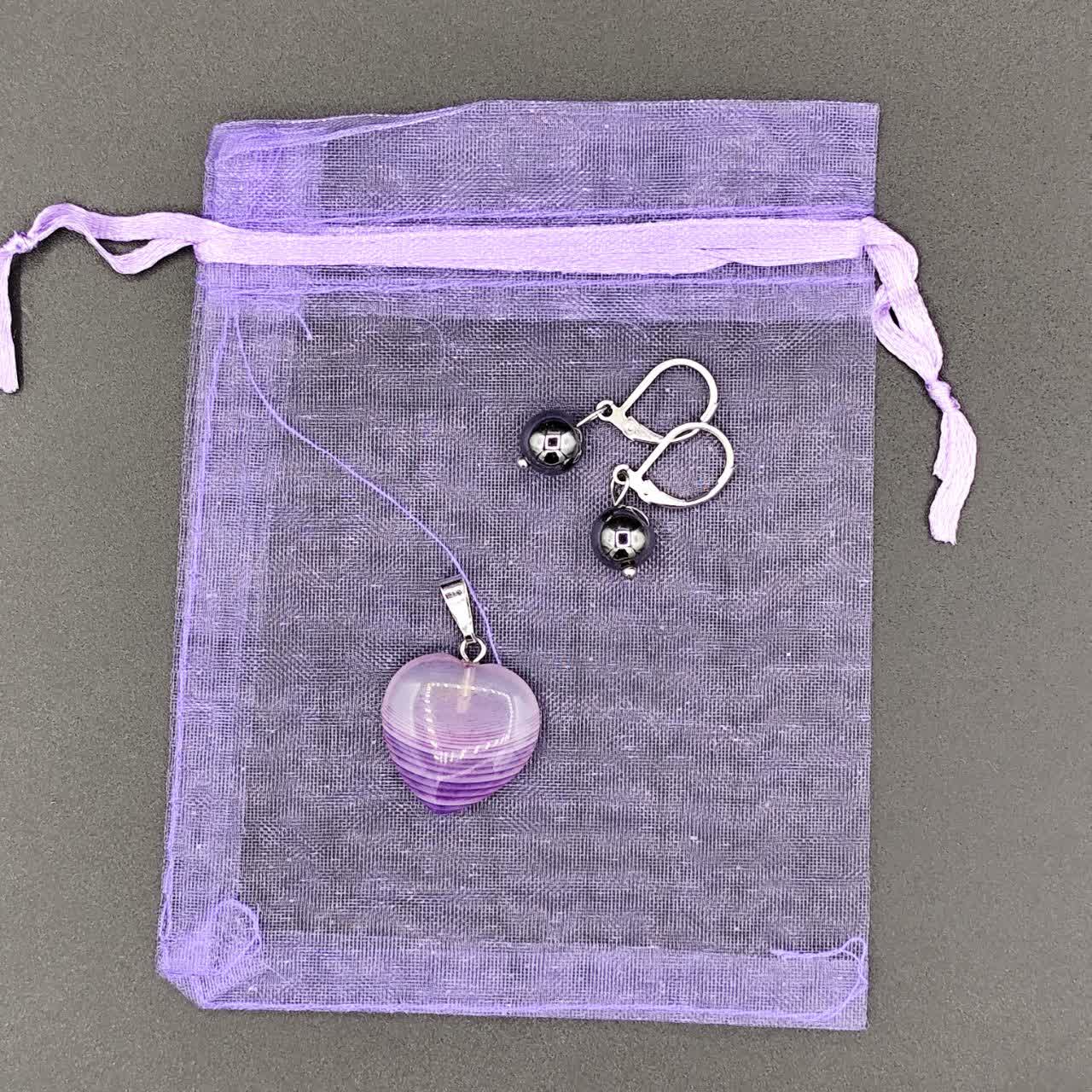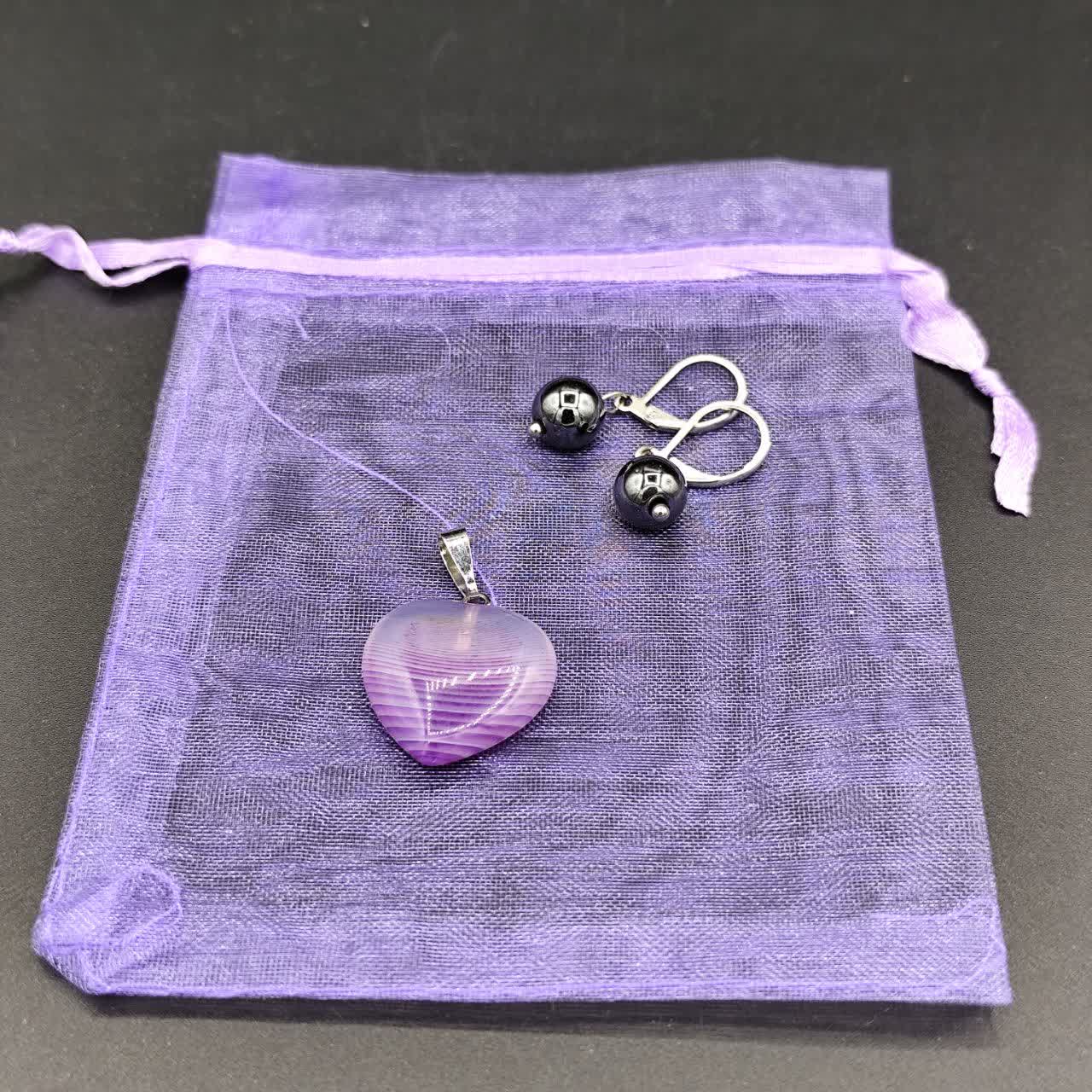 گوشواره حدید صینی ، گردنبند عقیق سلیمانی ، کیسه نگهدارنده