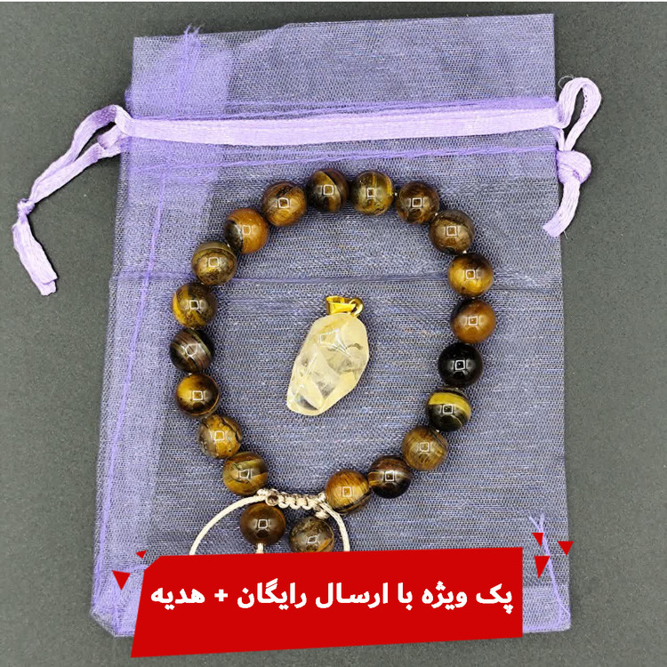 دستبند چشم ببر ، گردنبند سیترین ، کیسه نگهدارنده