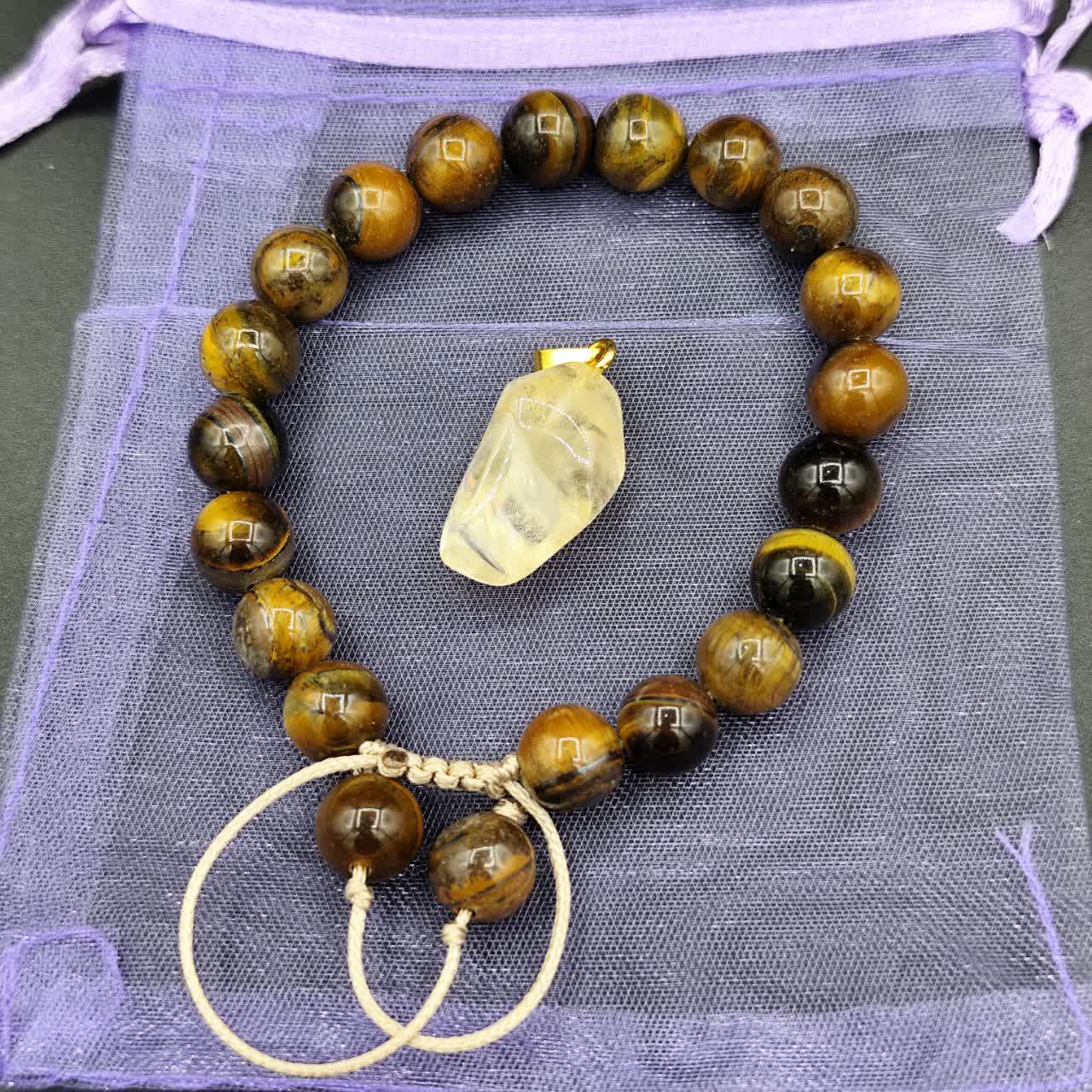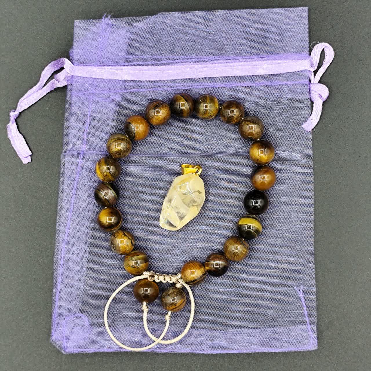 دستبند چشم ببر ، گردنبند سیترین ، کیسه نگهدارنده