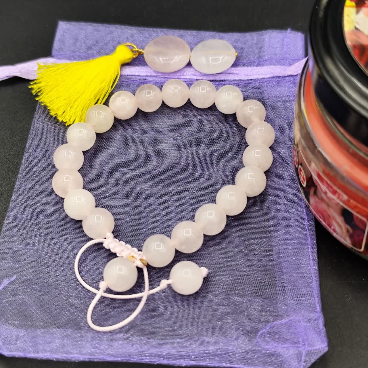 سکه عشق سنگ رزکوارتز ، دستبند رزکواراز ، شمع رز 30 ساعت سوخت ، کیسه نگهدارنده