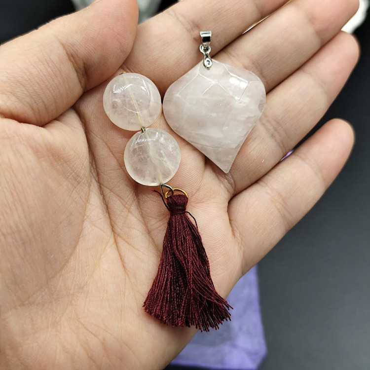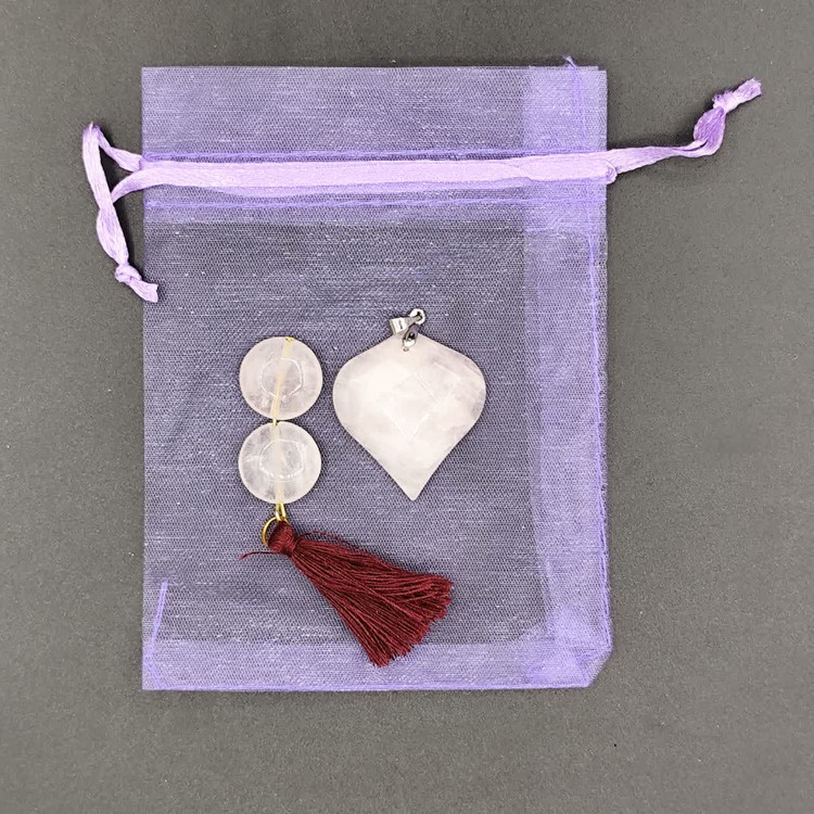سکه عشق سنگ رزکوارتز ، گردنبند رزکواراز ، کیسه نگهدارنده