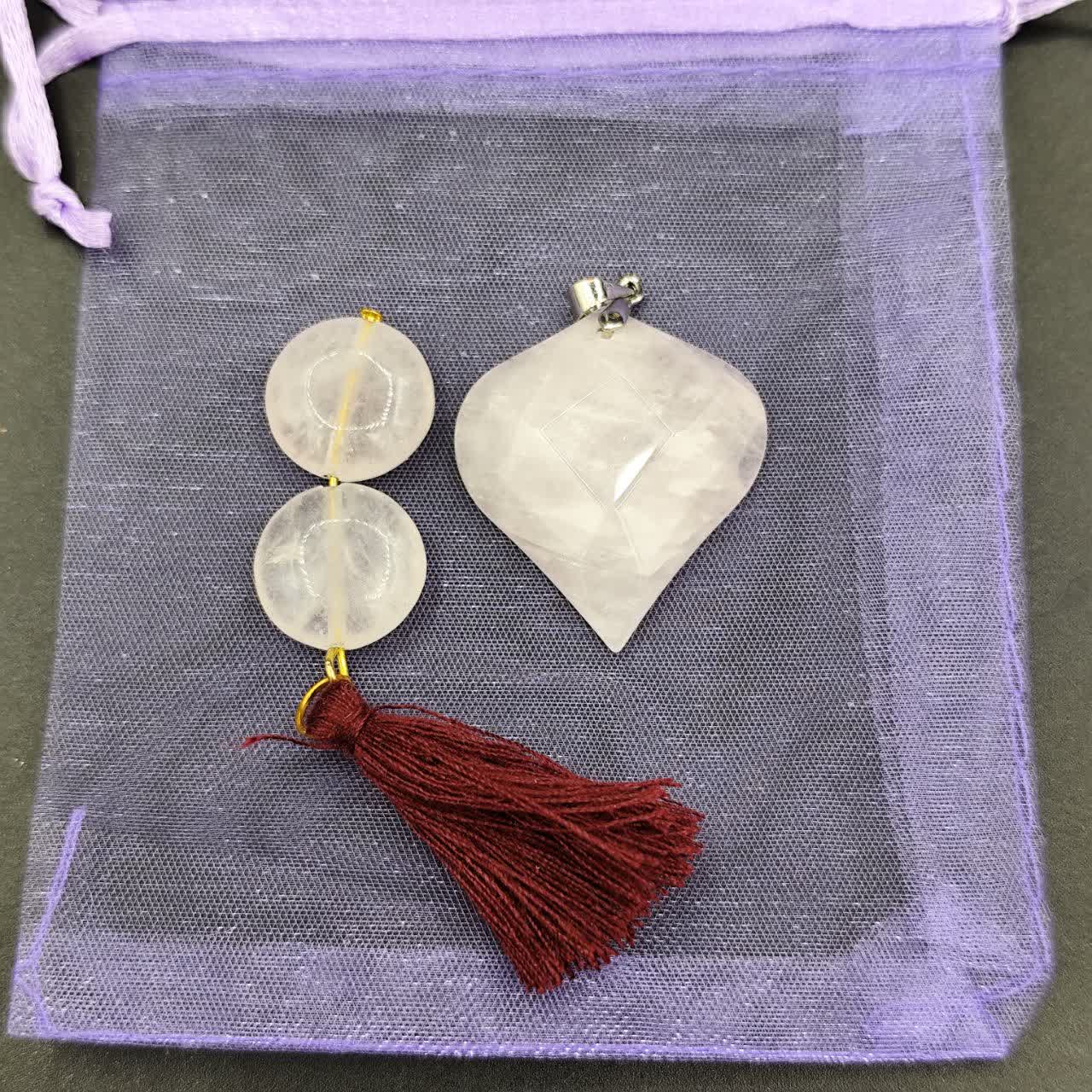 سکه عشق سنگ رزکوارتز ، گردنبند رزکواراز ، کیسه نگهدارنده